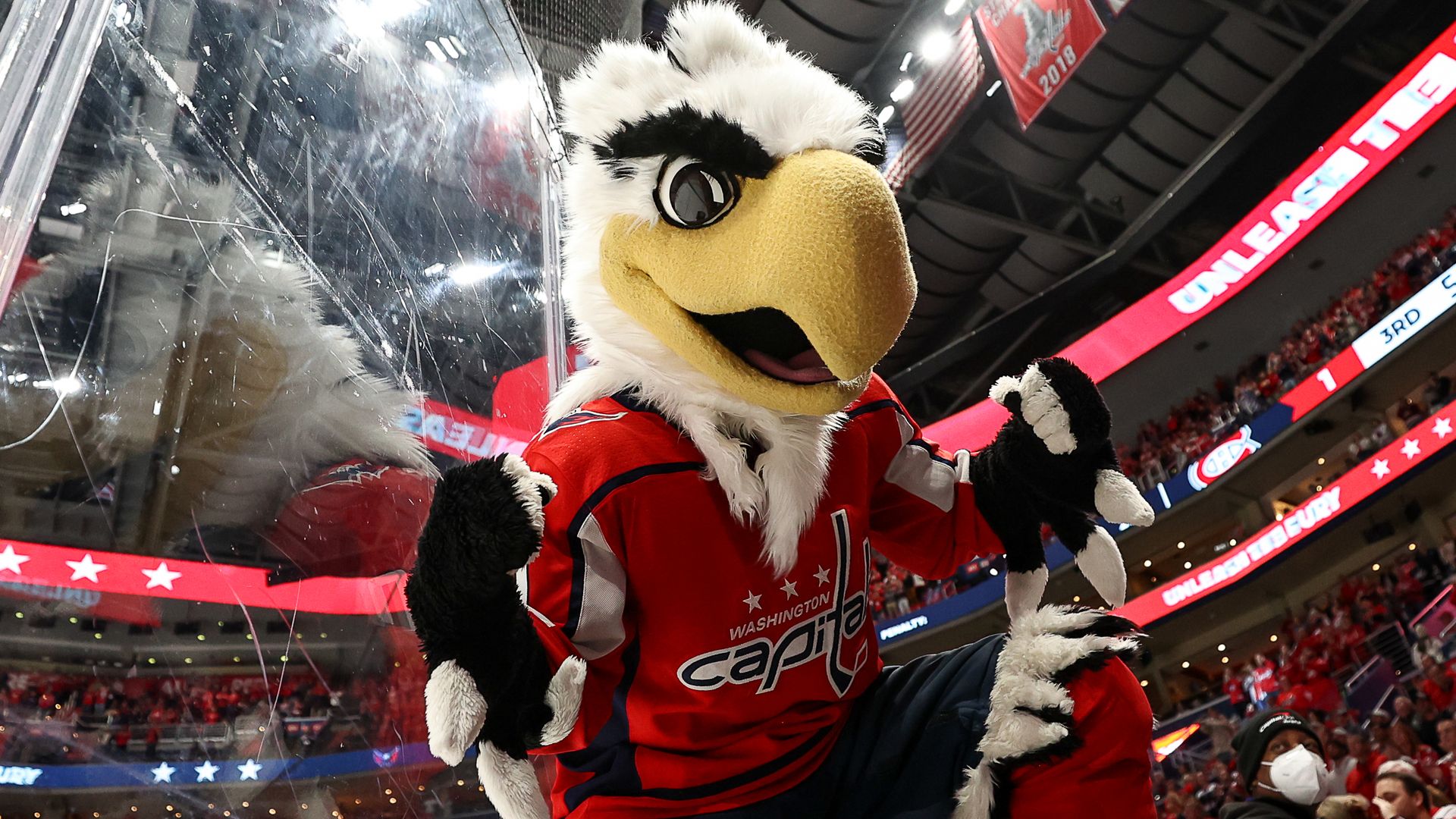 This season, grab a selfie with Caps mascot Slapshot. Photo: John McCreary/NHLI via Getty Images