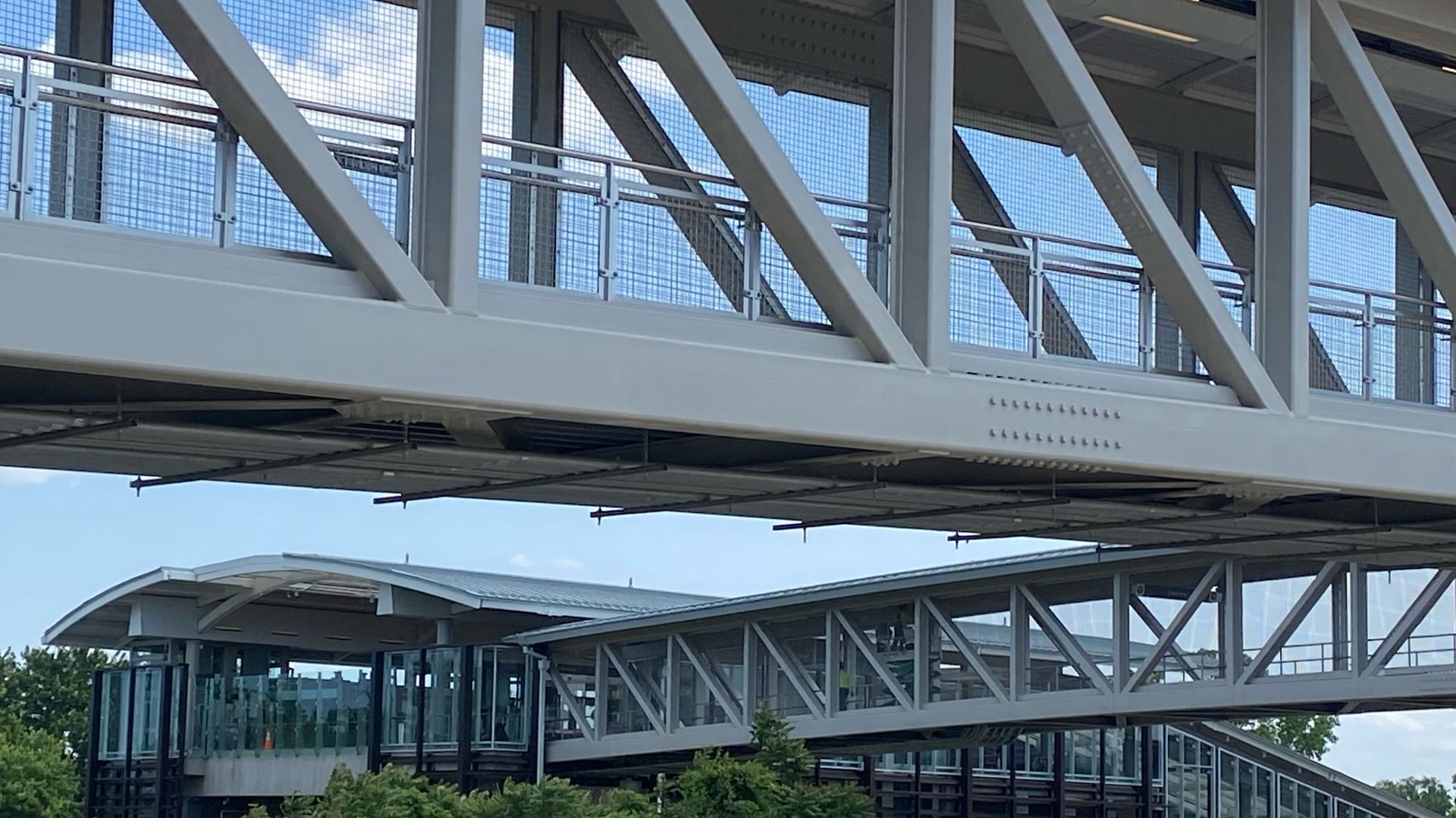 Riders can go in through entrances on both the north and south sides of the station and use a pedestrian walkway to enter the platforms.