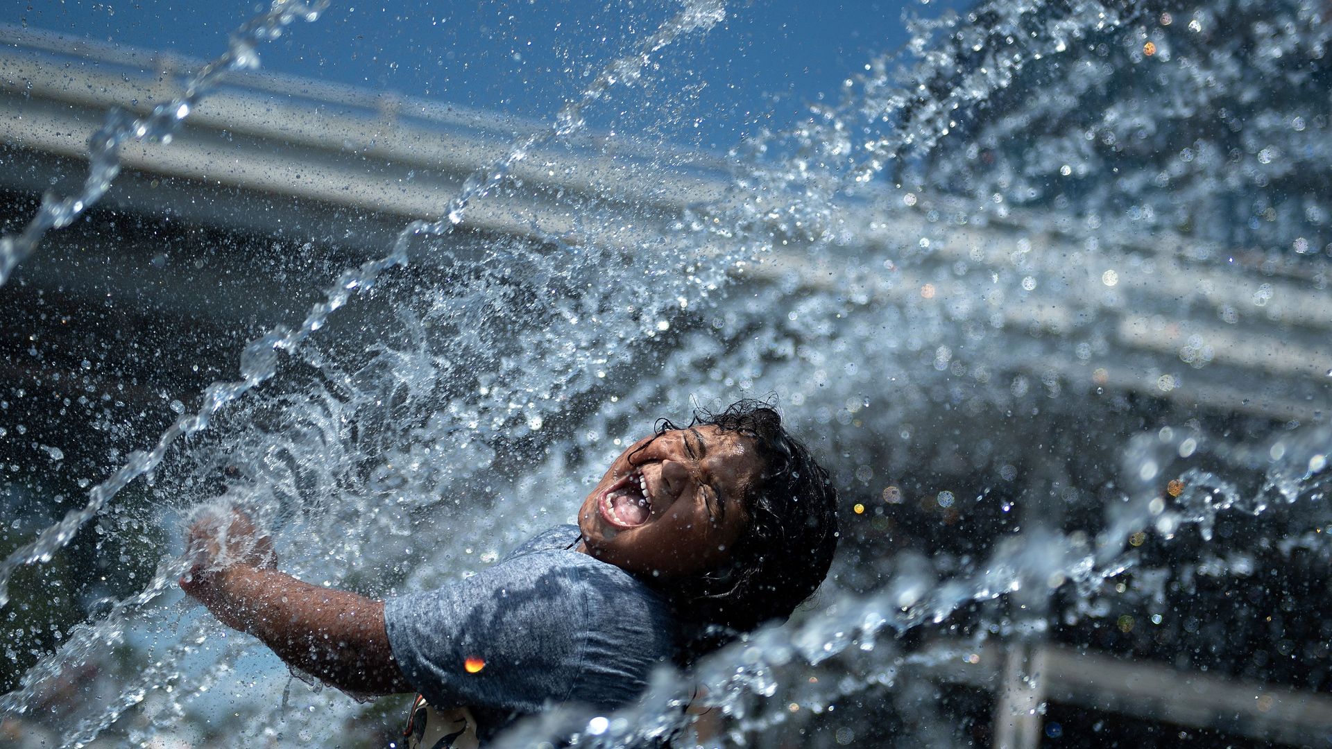 A splash park at the Georgetown waterfront in a previous heatwave. Photo: BRENDAN SMIALOWSKI/AFP via Getty Images