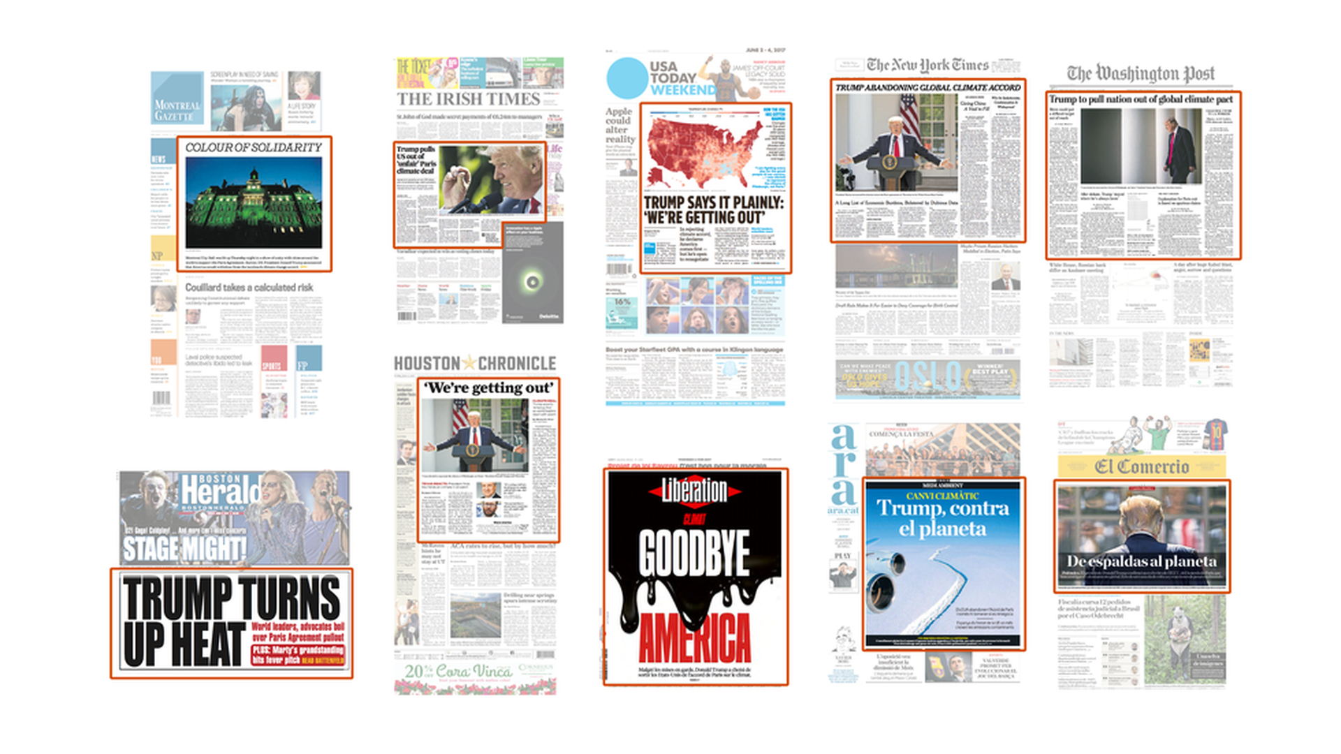 Today's global front pages on Trump's Paris decision