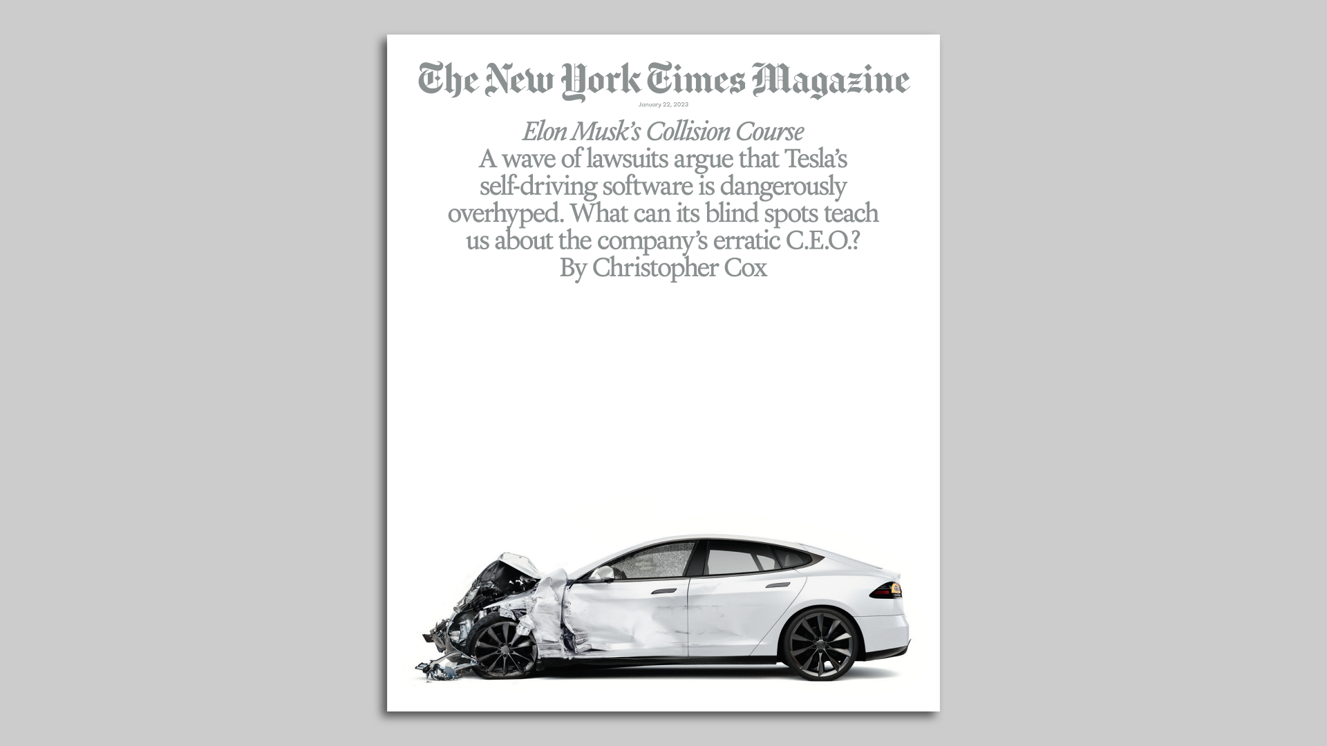 "The company would admit to the technology’s limitations in the user manual but publish viral videos of a Tesla driving a complicated route with no human intervention."