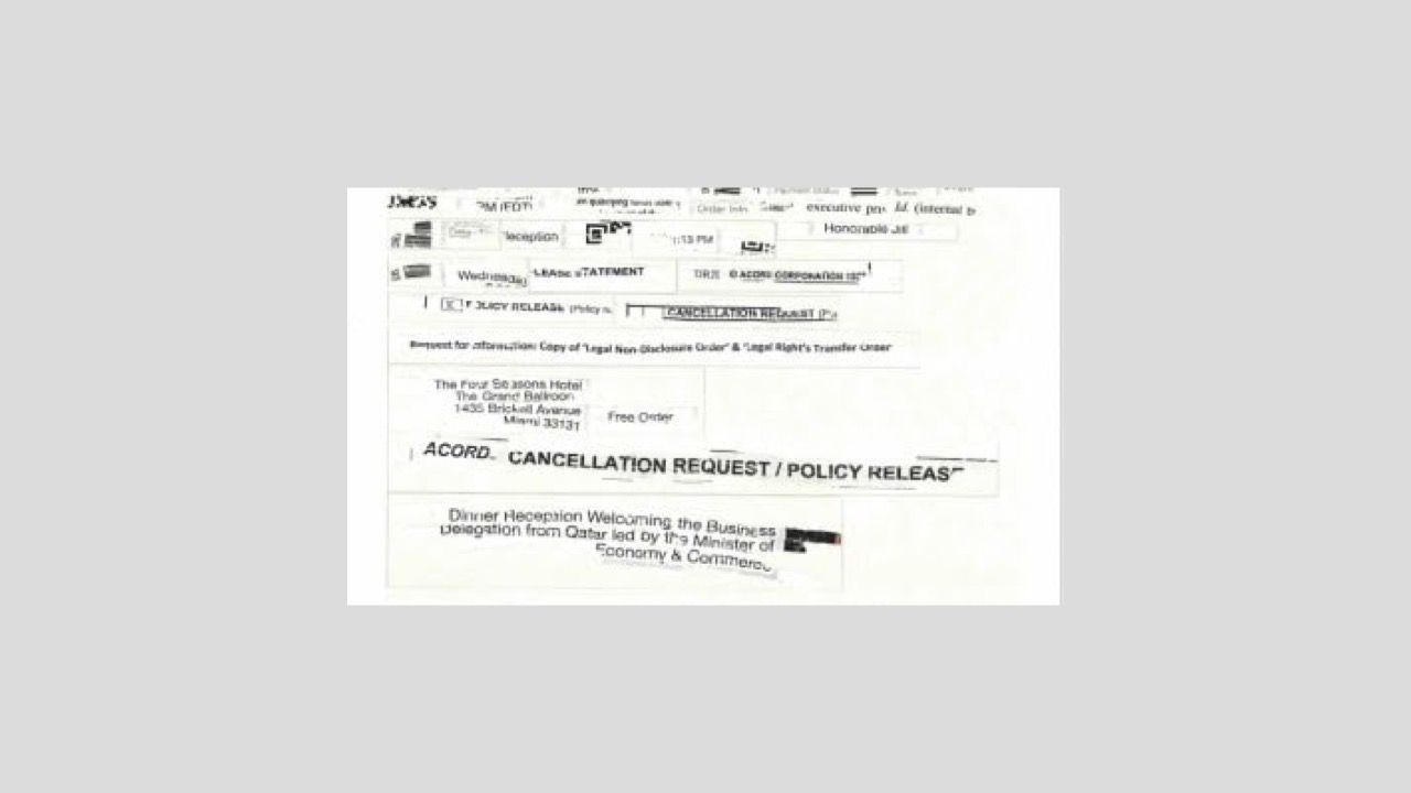 - "Rebuilt from thin strips of paper, the shredded records are sometimes difficult to comprehend. One page doesn’t include full words and is a jumble of numbers, letters, and bar codes. One document appears to be part of an envelope. There are fragments of handwritten notes. There is an invitation to a reception in Miami to meet with business representatives from Qatar."