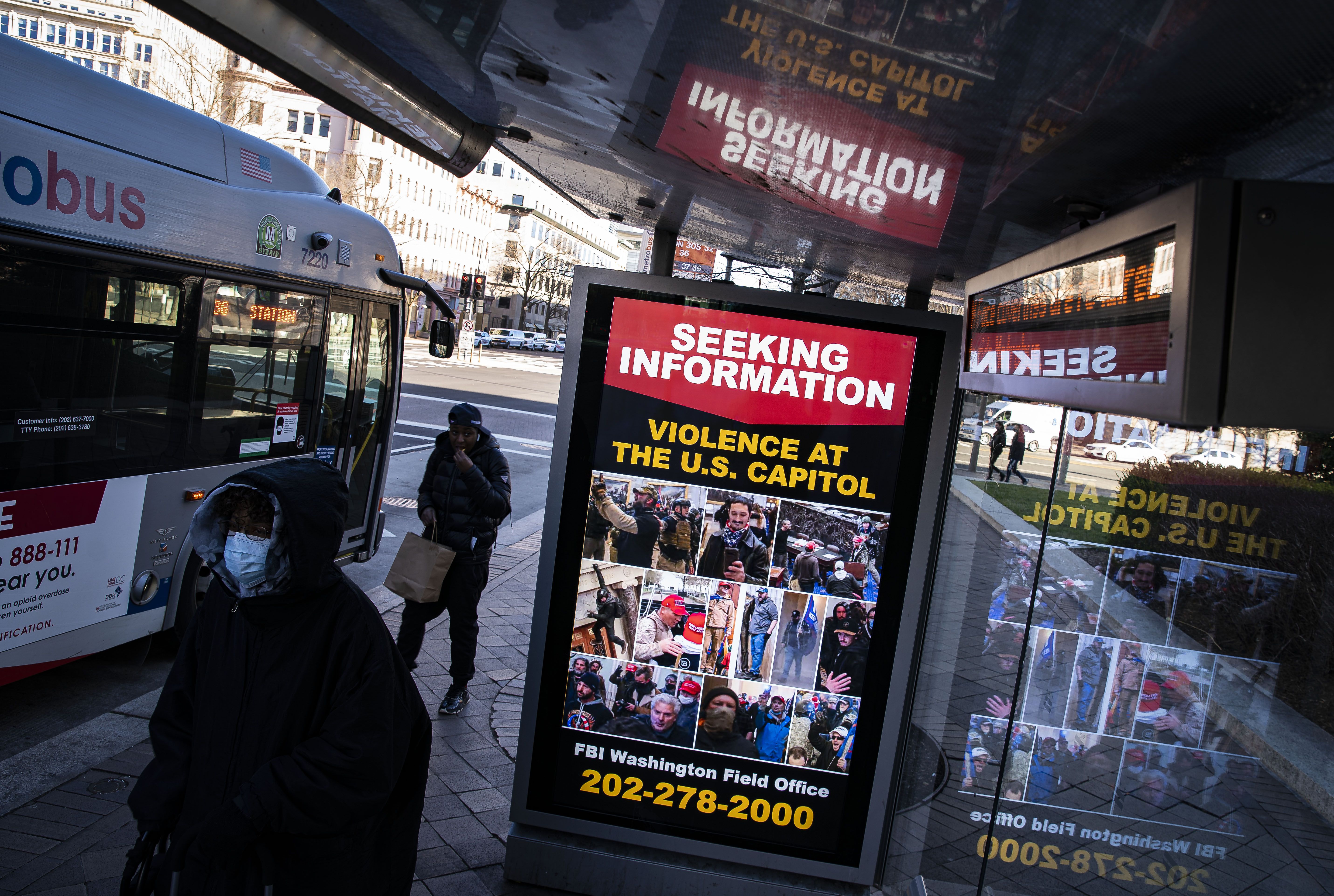 An FBI poster on a bus stop on Pennsylvania Avenue NW.