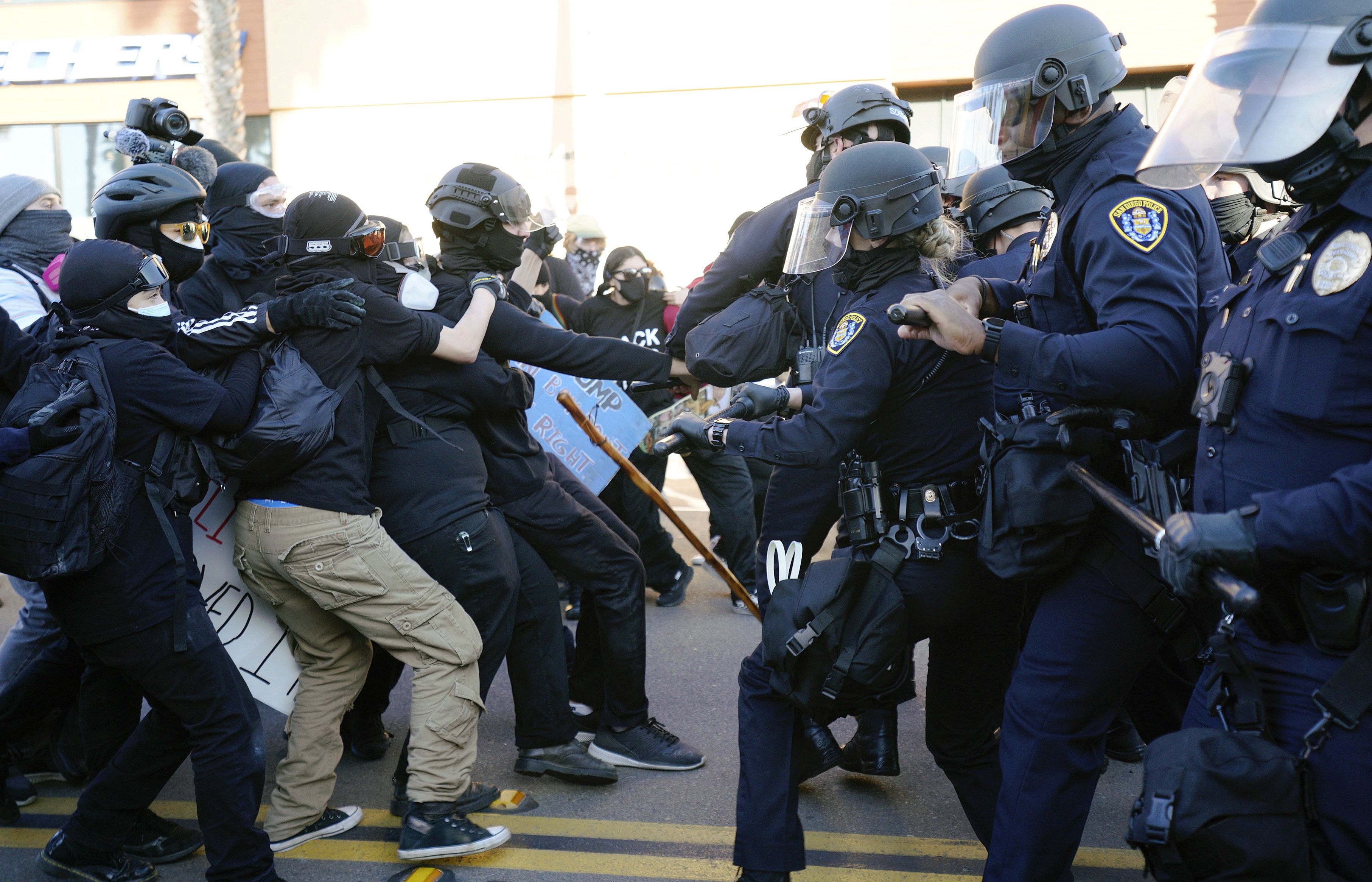 In San Diego, police battle protesters after an unlawful assembly was declared, because of acts of violence as Trump supporters clashed with counter-protesters.