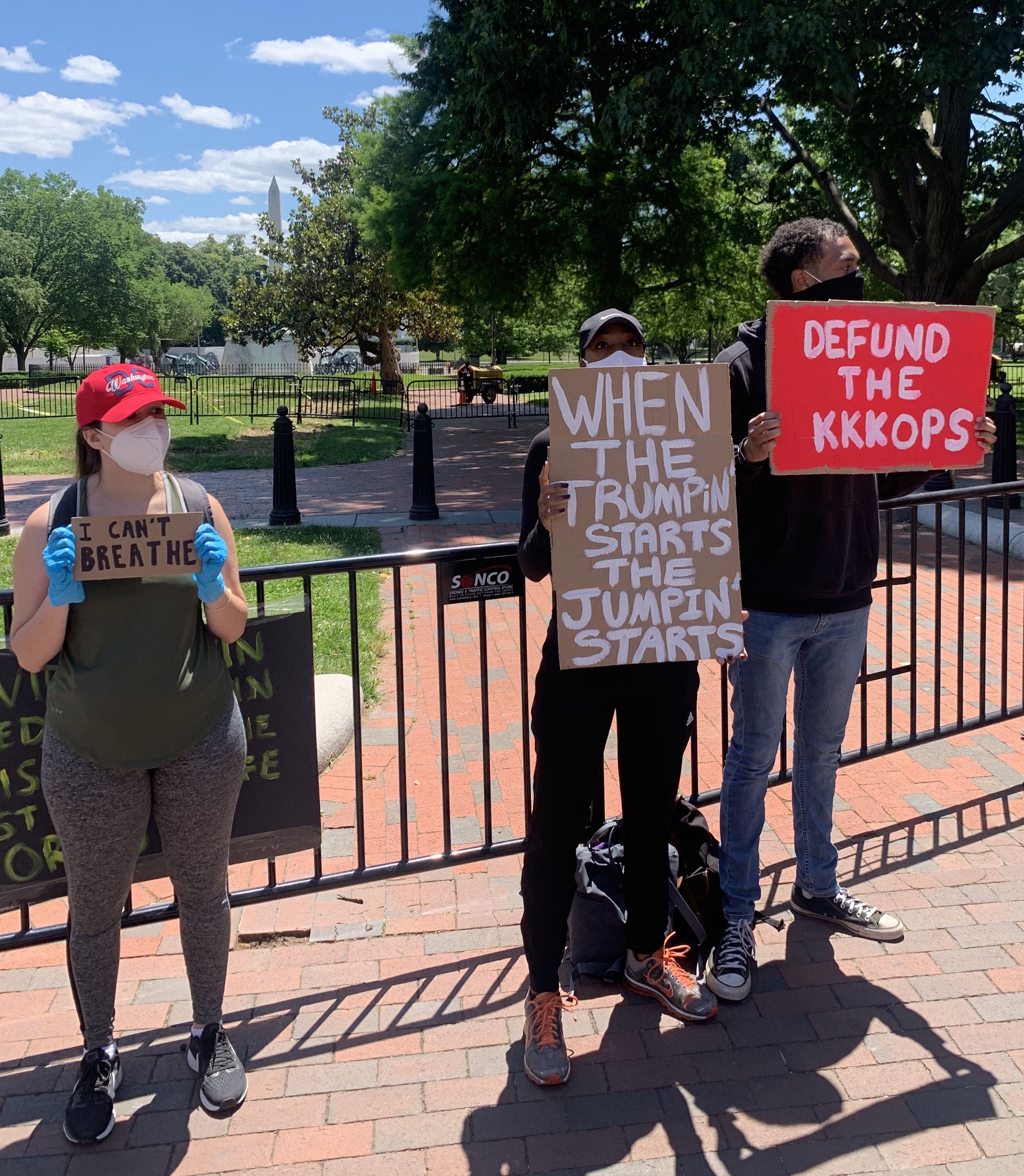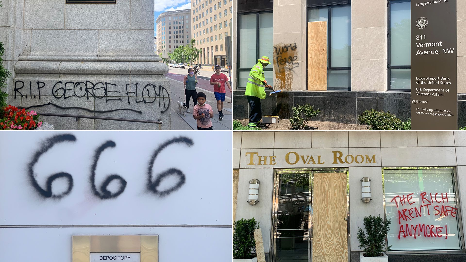 When I took a stroll in the Sunday sunshine to check out the area around the White House after the mayhem the night before, I saw the day-night dichotomy of so many of this weekend's protests around the country.