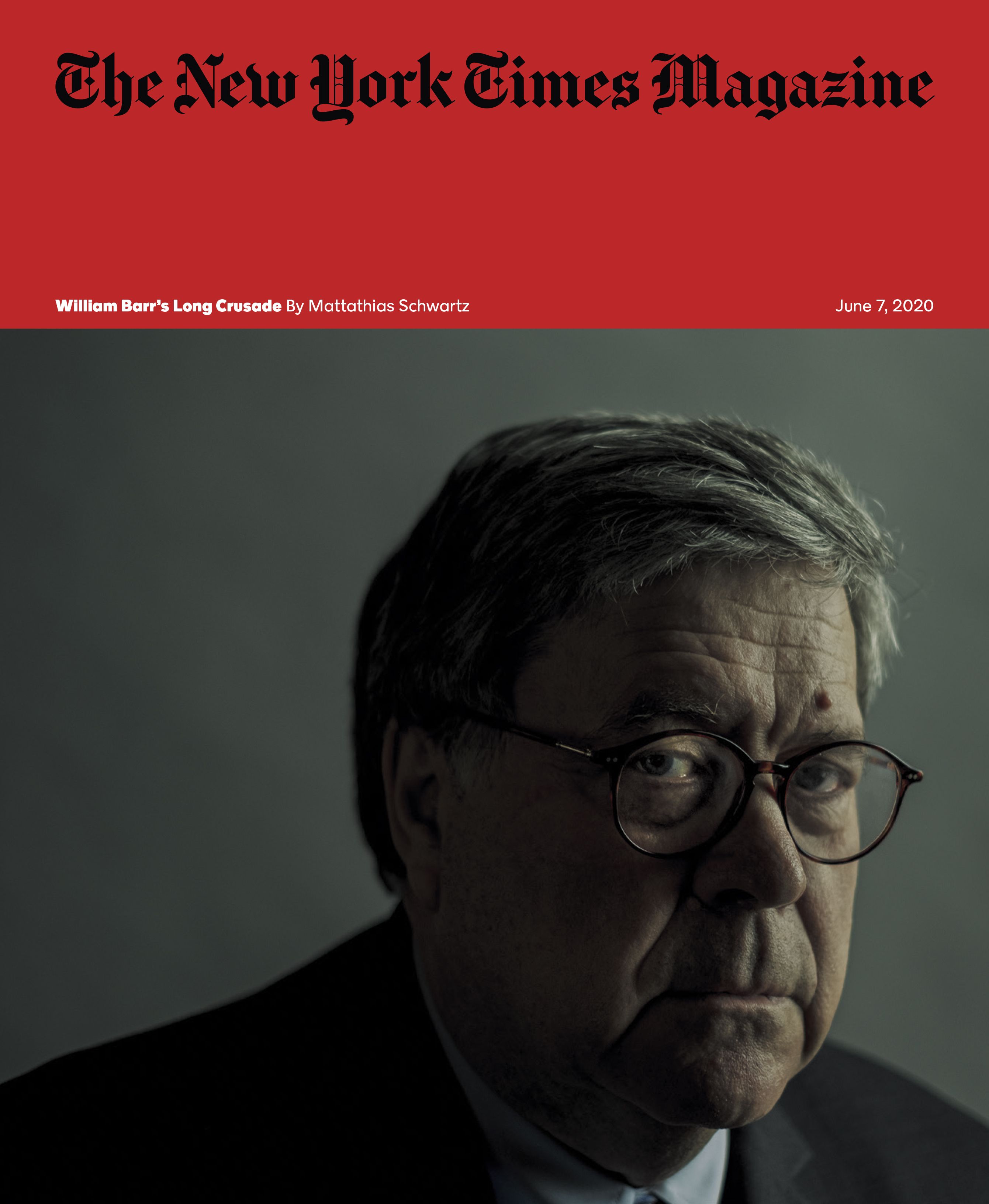 Attorney General William Barr "has long held an expansive view of presidential power. With multiple crises converging in the run-up to the 2020 election, he is busy putting his theories to work," Mattathias Schwartz writes in a 9,000-word profile in next week's New York Times Magazine.