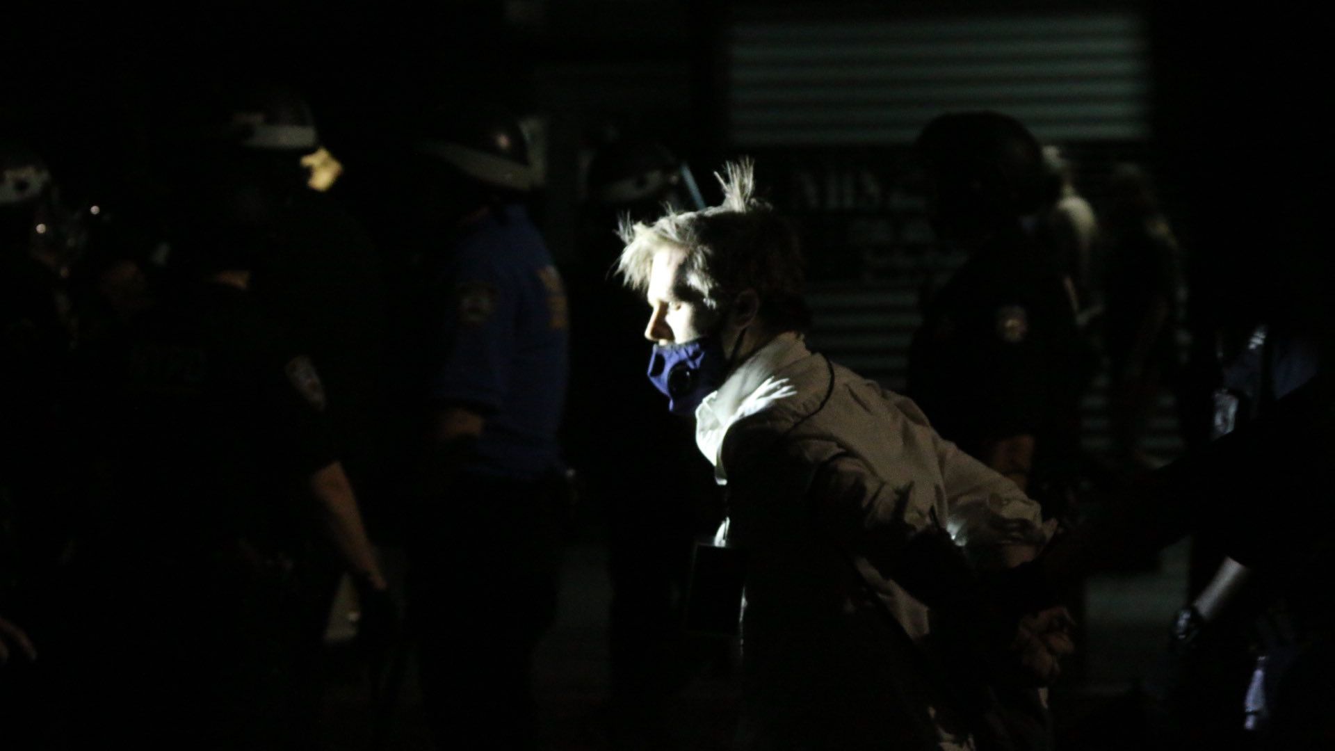 HuffPost reporter Christopher Mathias being arrested in Brooklyn on Saturday. Photo: Phoebe Leila Barghouty/Twitter