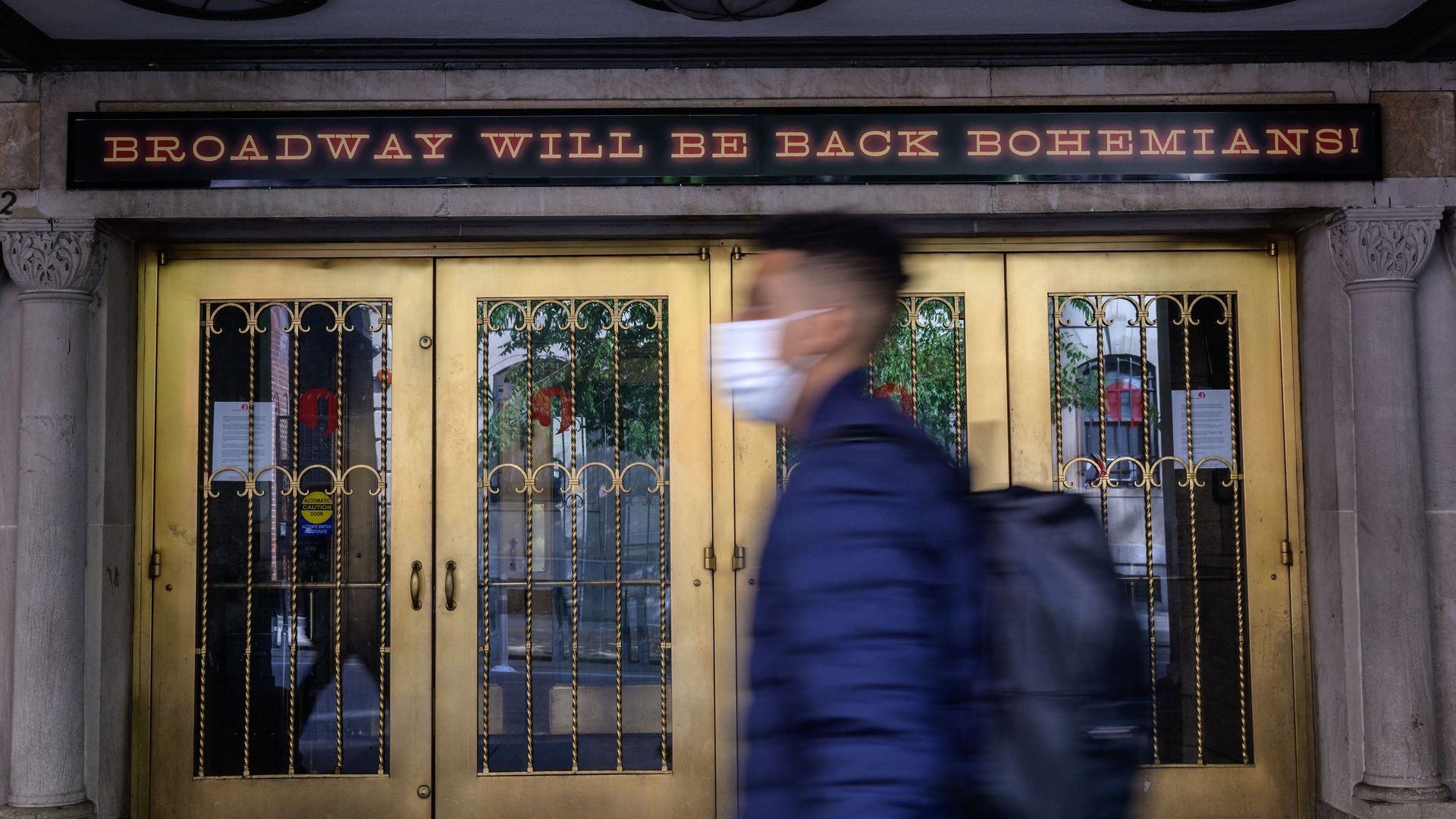 A closed Broadway theater yesterday. Photo: Angela Weiss/AFP via Getty Images