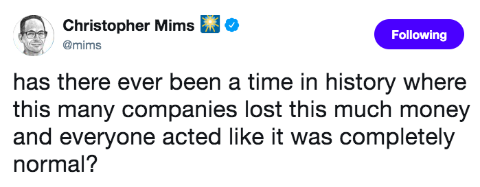 - "Wall Street rewards a compelling growth story, and investors are willing to bet on the promise of ‘profitability ... someday.'"