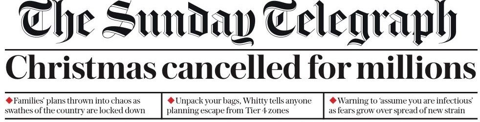 - "Johnson imposed an effective lockdown on over 16 million people in England and reversed plans to ease curbs over Christmas," Reuters reports.