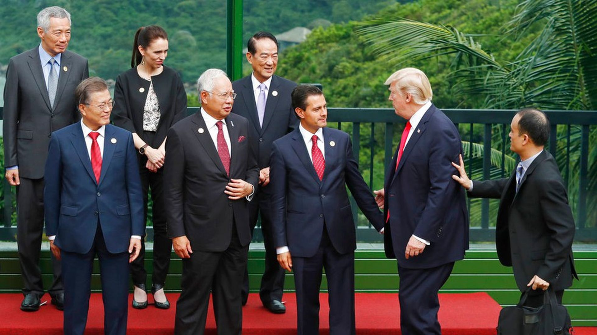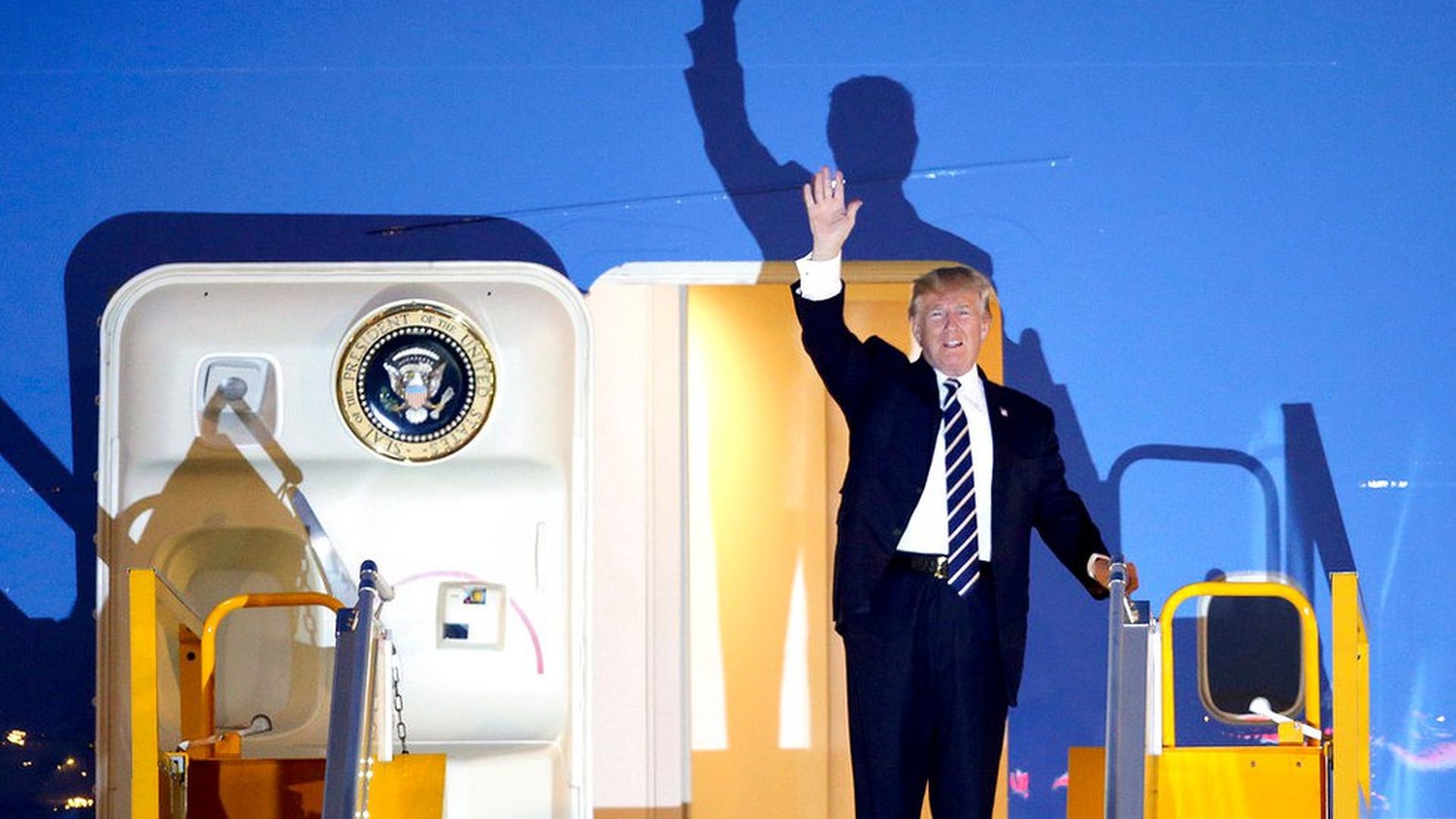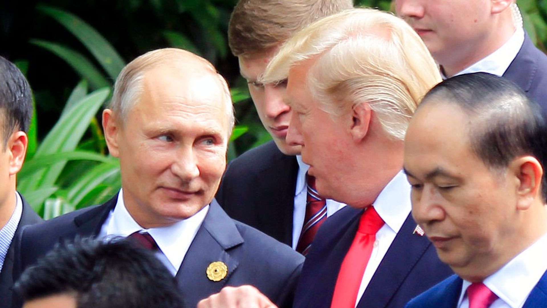 In a remarkable gaggle with reporters aboard Air Force One over Vietnam that's a guided tour of his mind and presidency, President Trump recounted a conversation about election meddling that he had with Russia President Vladimir Putin at an international summit today (via pooler Ashley Parker of WashPost):