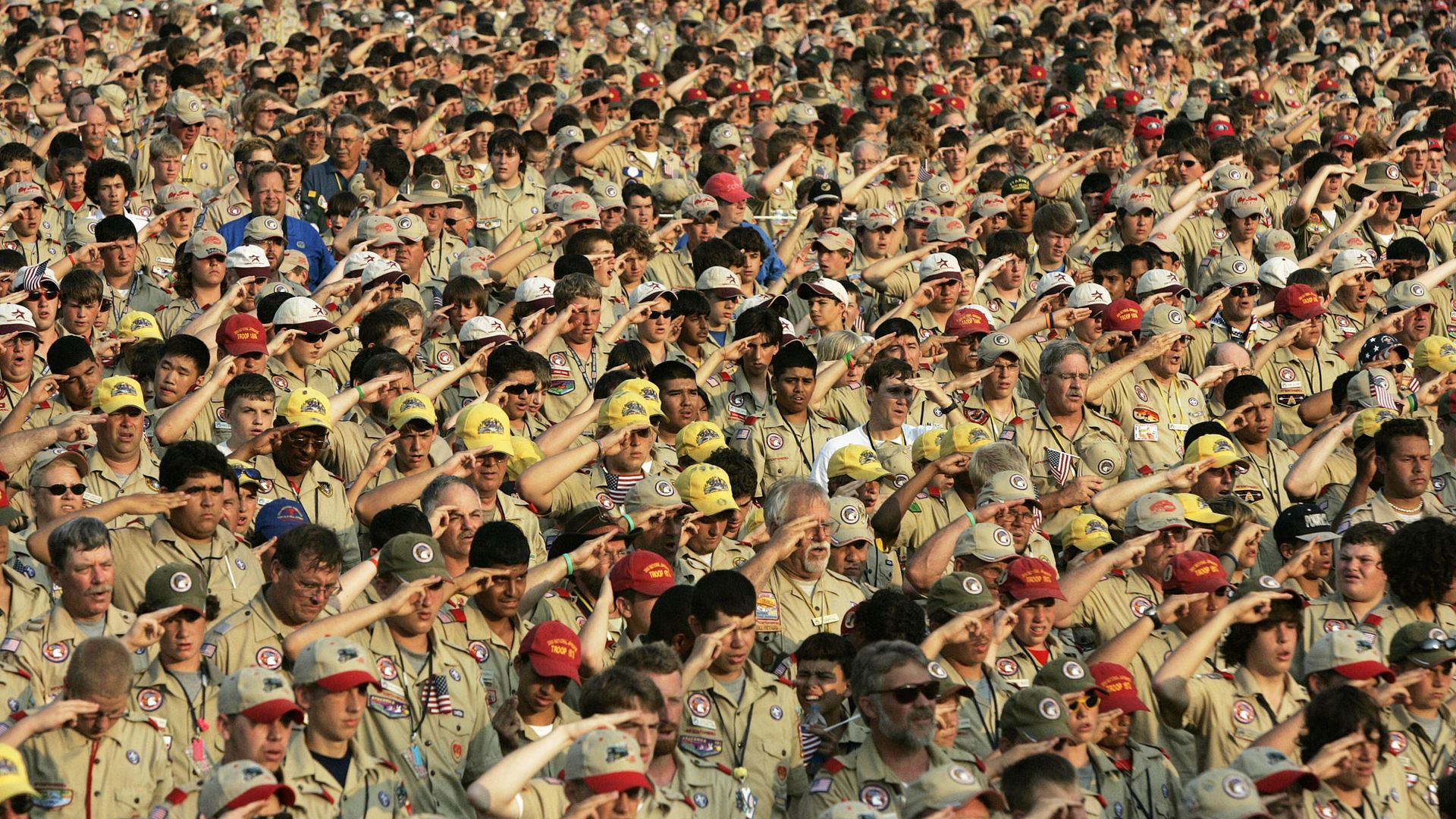 Boy Scouts salute as they recite the Pledge of Allegiance during a national jamboree in Bowling Green, Va., in 2005. Photo: Haraz N. Ghanbari/AP
