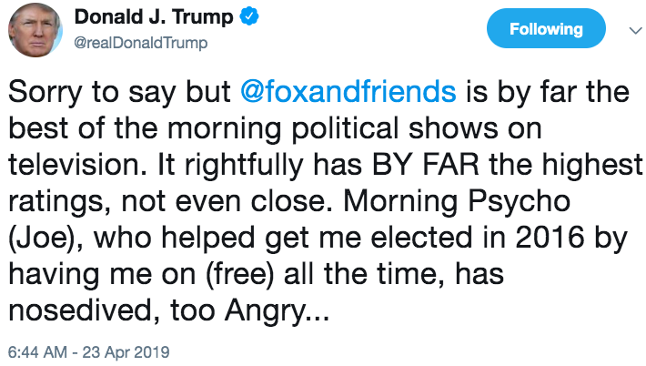 When President Trump tweeted about "Morning Joe" while the show was on the air yesterday ...