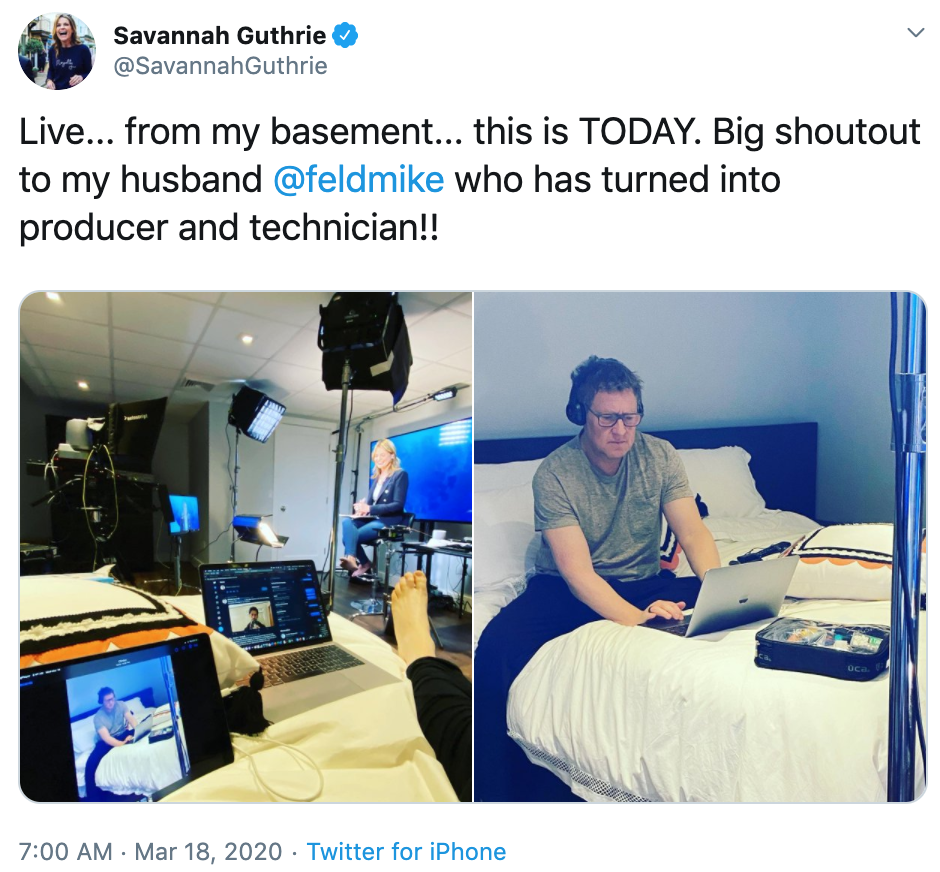 NBC's Savannah Guthrie wasn't feeling her best — sniffles she would have ignored in normal times. Following NBC's medical advice, she co-anchored "Today" from her New York basement, with Hoda Kotb on-set at Studio 1A.