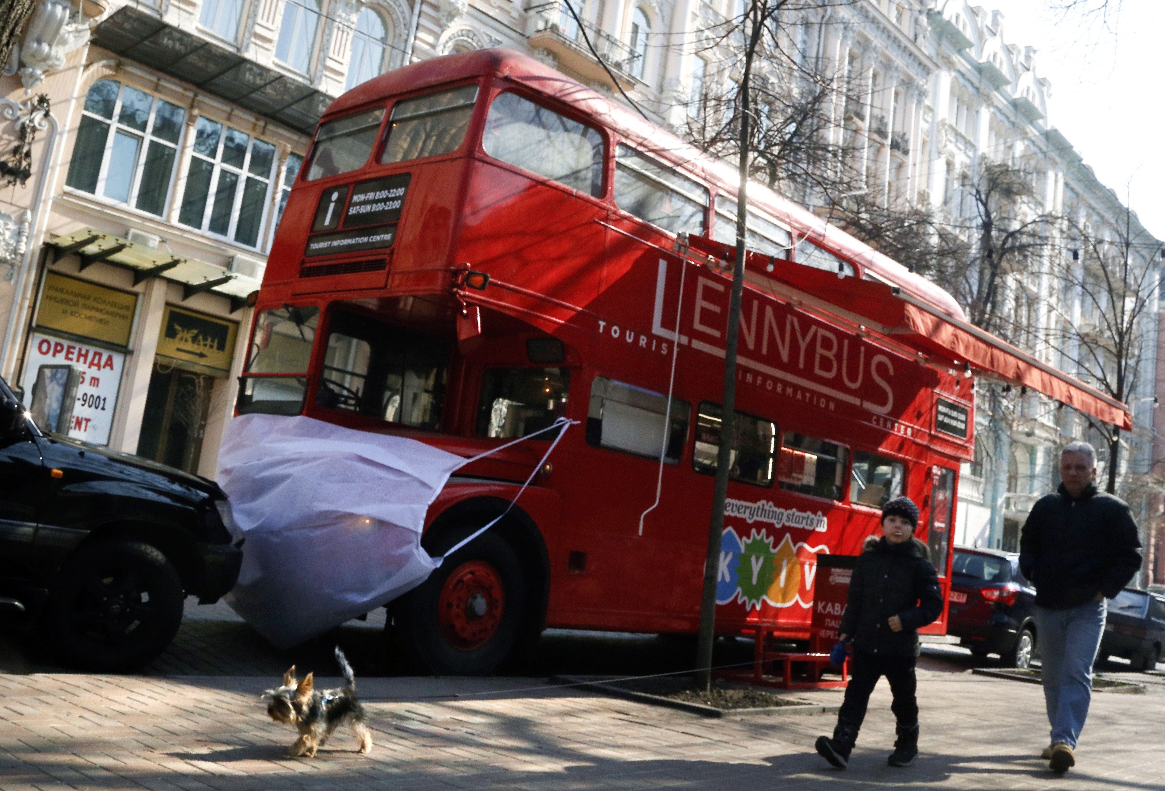 This double-decker bus is used as a cafe in Kyiv, Ukraine.