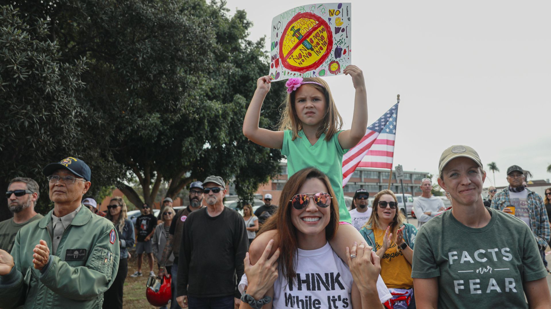 Anti-vax protesters outside the San Diego Unified School District office on Tuesday. Photo: Sandy Huffaker/Getty Images