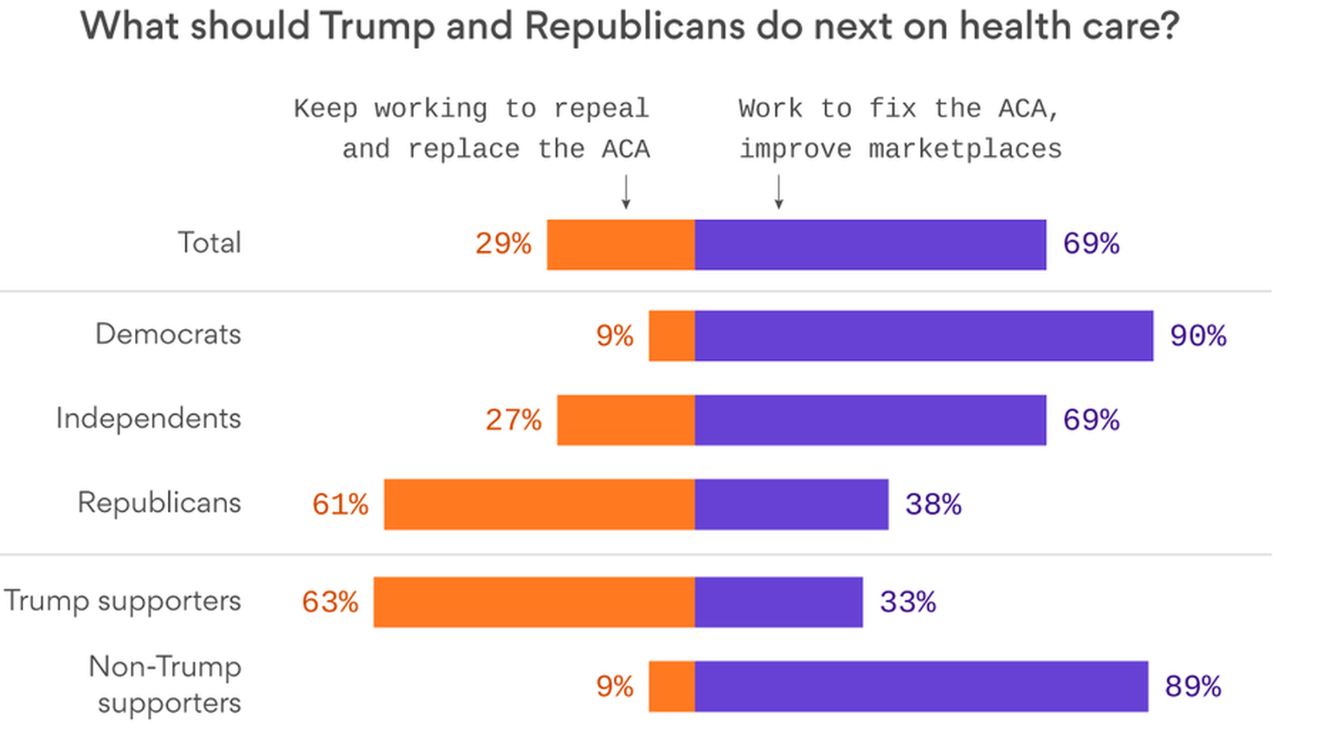 A Kaiser Family Foundation poll out this morning finds a huge disconnect between what Republican voters want and what Democrats and independents want, Axios' David Nather writes.