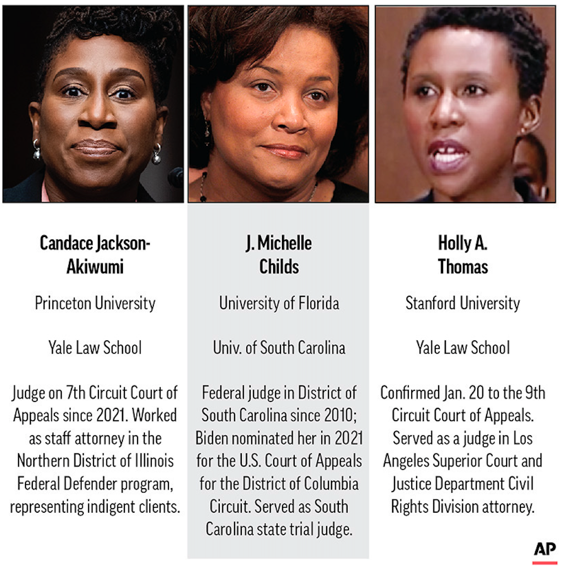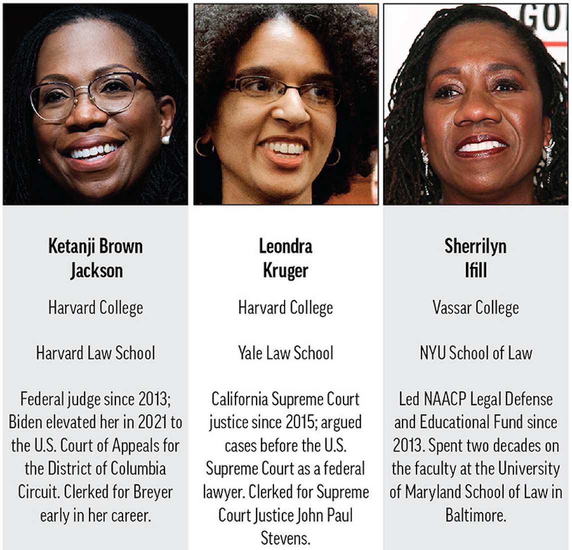 - Biden pledged during the campaign to nominate the first Black woman to the high court. Among his options (with their undergraduate schools, followed by their law schools):
