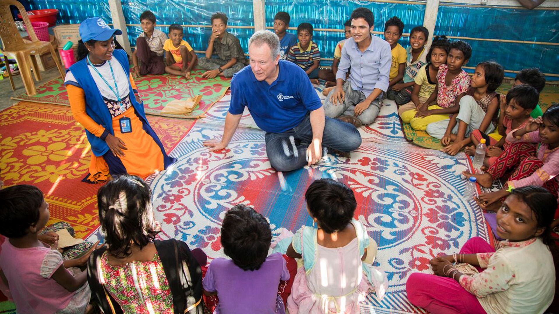 World Food Program executive director David Beasley talks to children at a refugee center in Bangladesh in October. (Saikat Mojumder / World Food Program via AP)