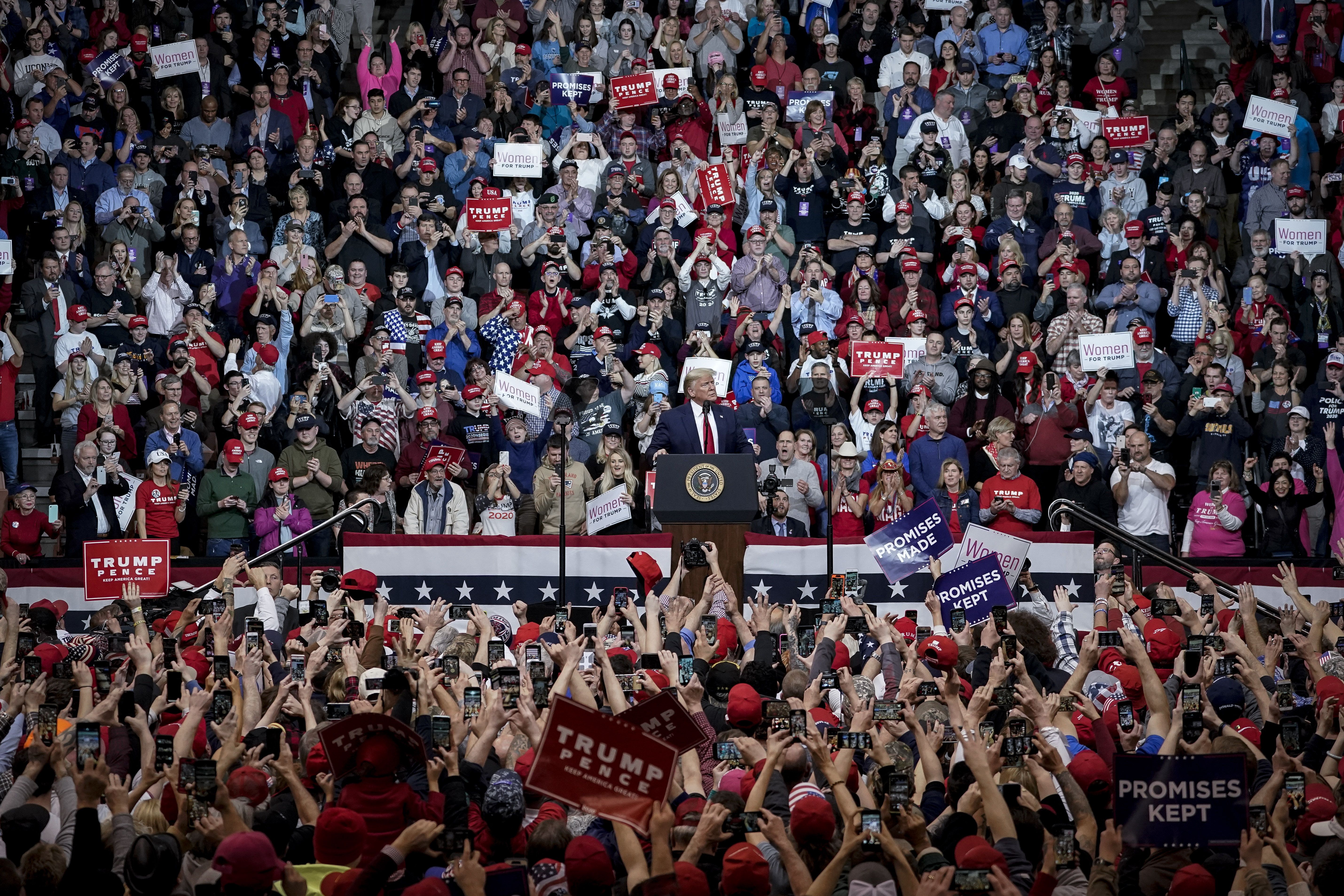 Below, President Trump taunted Dems with a "Keep America Great" rally at Southern New Hampshire University Arena in Manchester last evening: