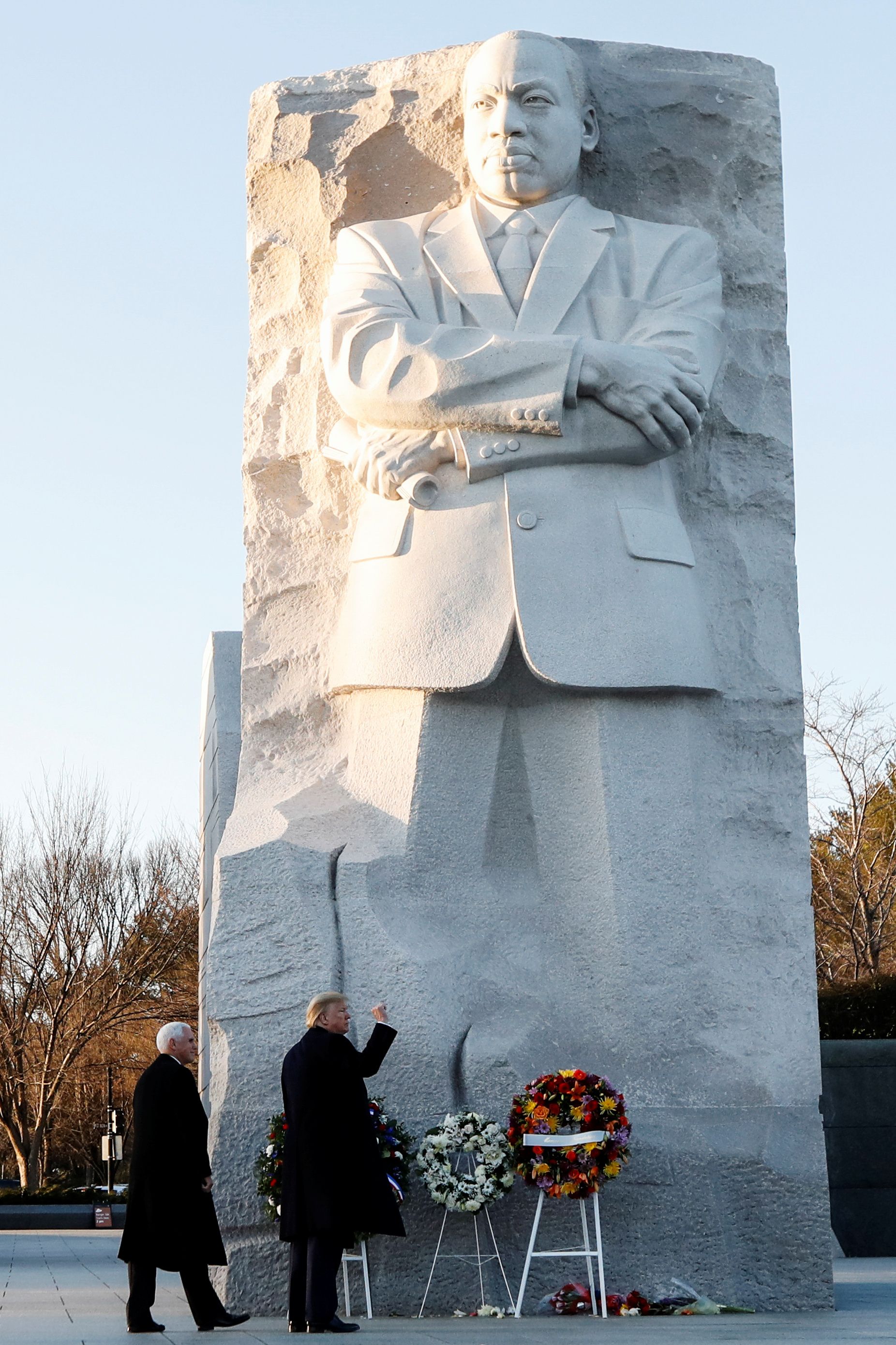 President Trump and Vice President Pence visit the Martin Luther King Jr. Memorial on the holiday in observance of his 91st birthday.
