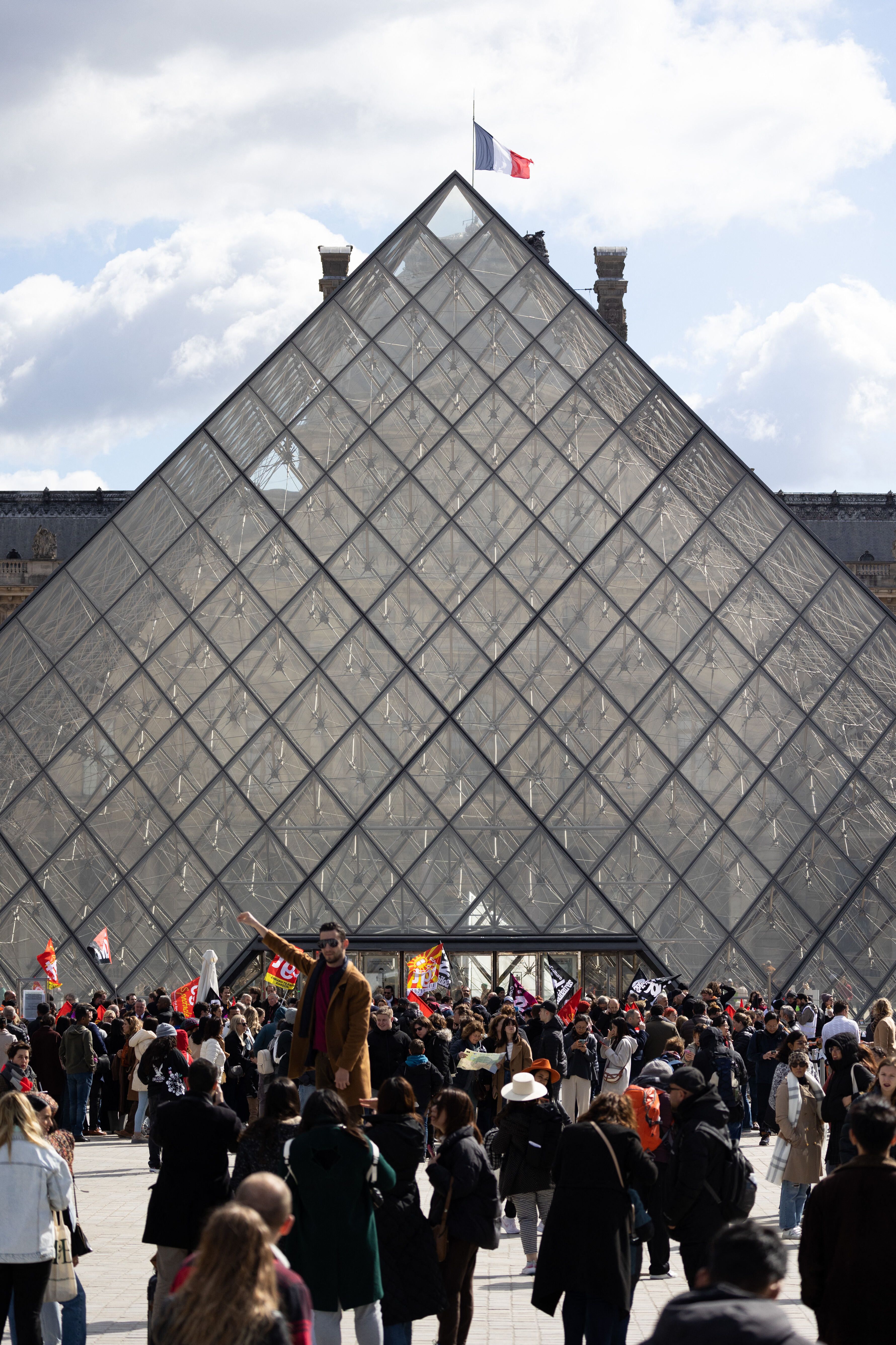 - Dozens of Louvre employees blocked the entrance (above), prompting the museum to announce it would be temporarily closed, AP reports.