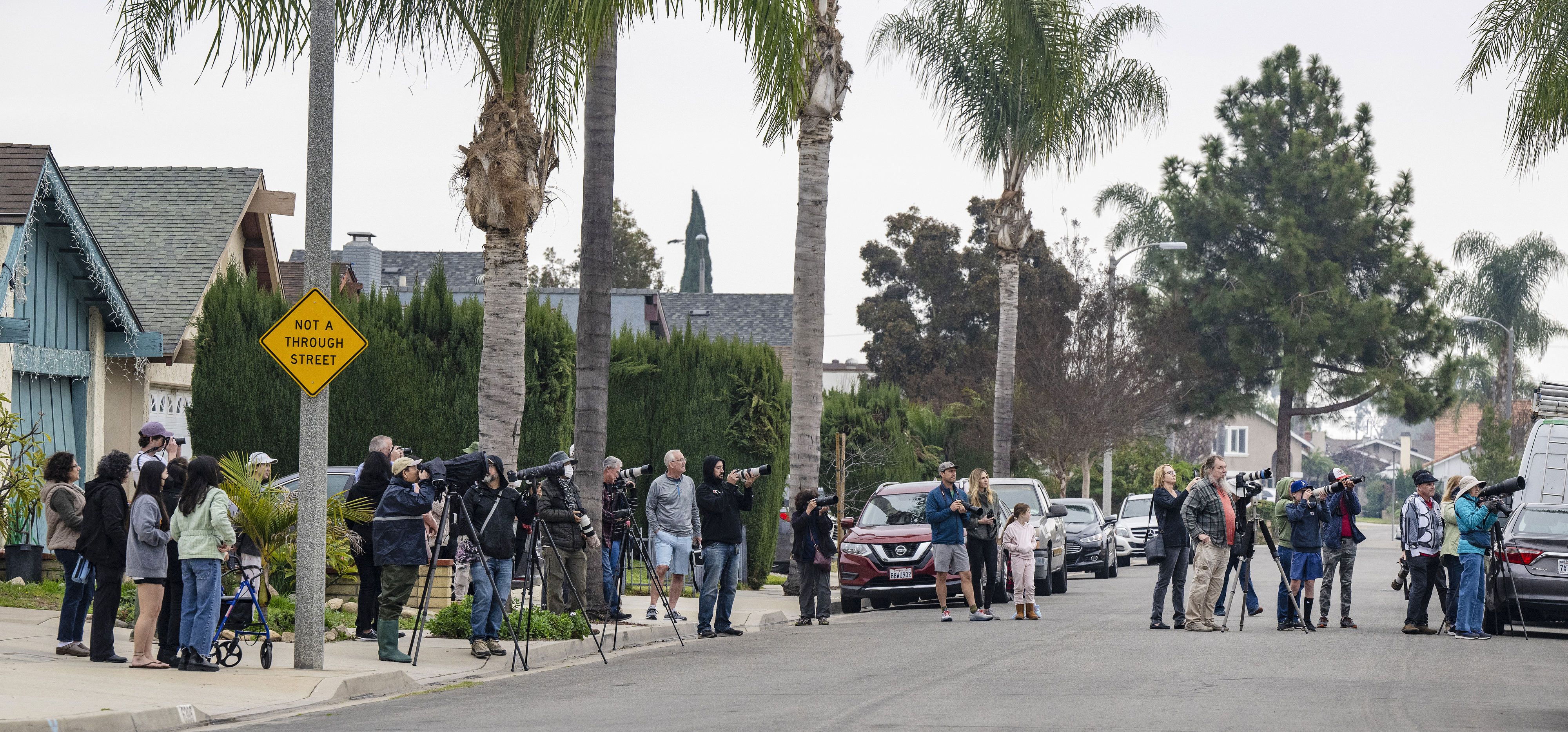 At times, nearly 30 people kept their eyes, phones and cameras glued on the far-from-home bird.