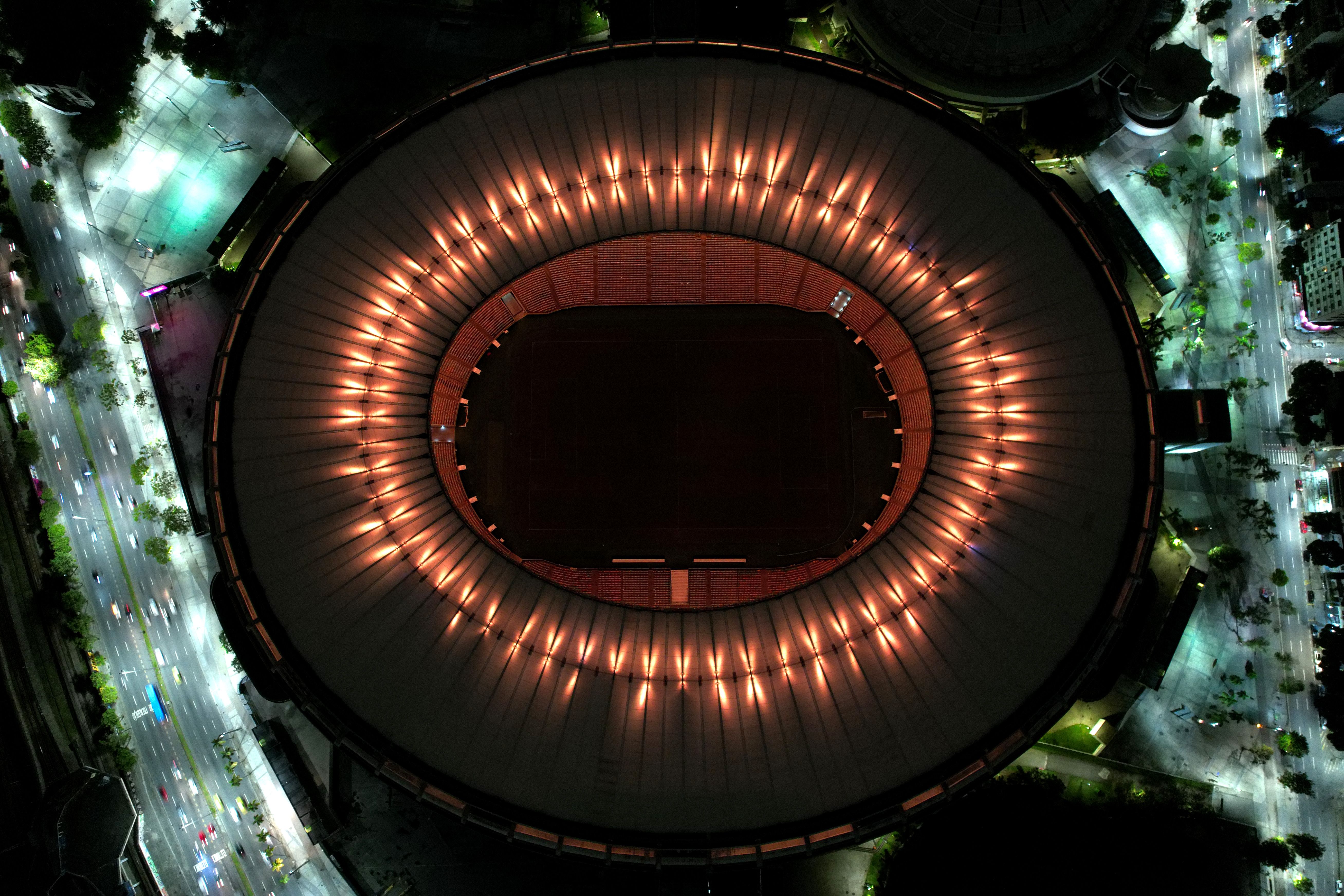 Above: Maracanã Stadium in Rio de Janeiro, Brazil, is lit with golden lights last night in tribute to Pelé.
