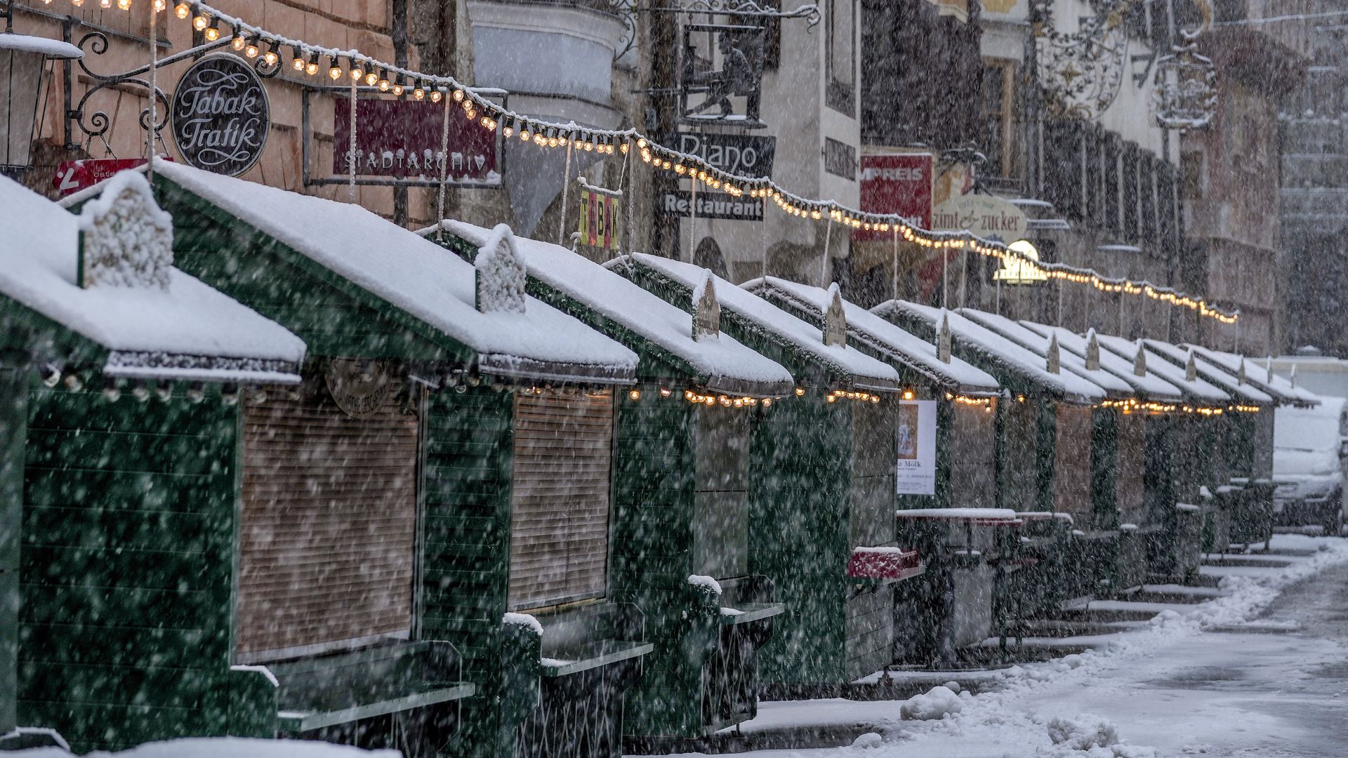 Closed booths in the Christmas market in Innsbruck, Austria, which was locking down even before Omicron. Photo: Michael Probst/AP