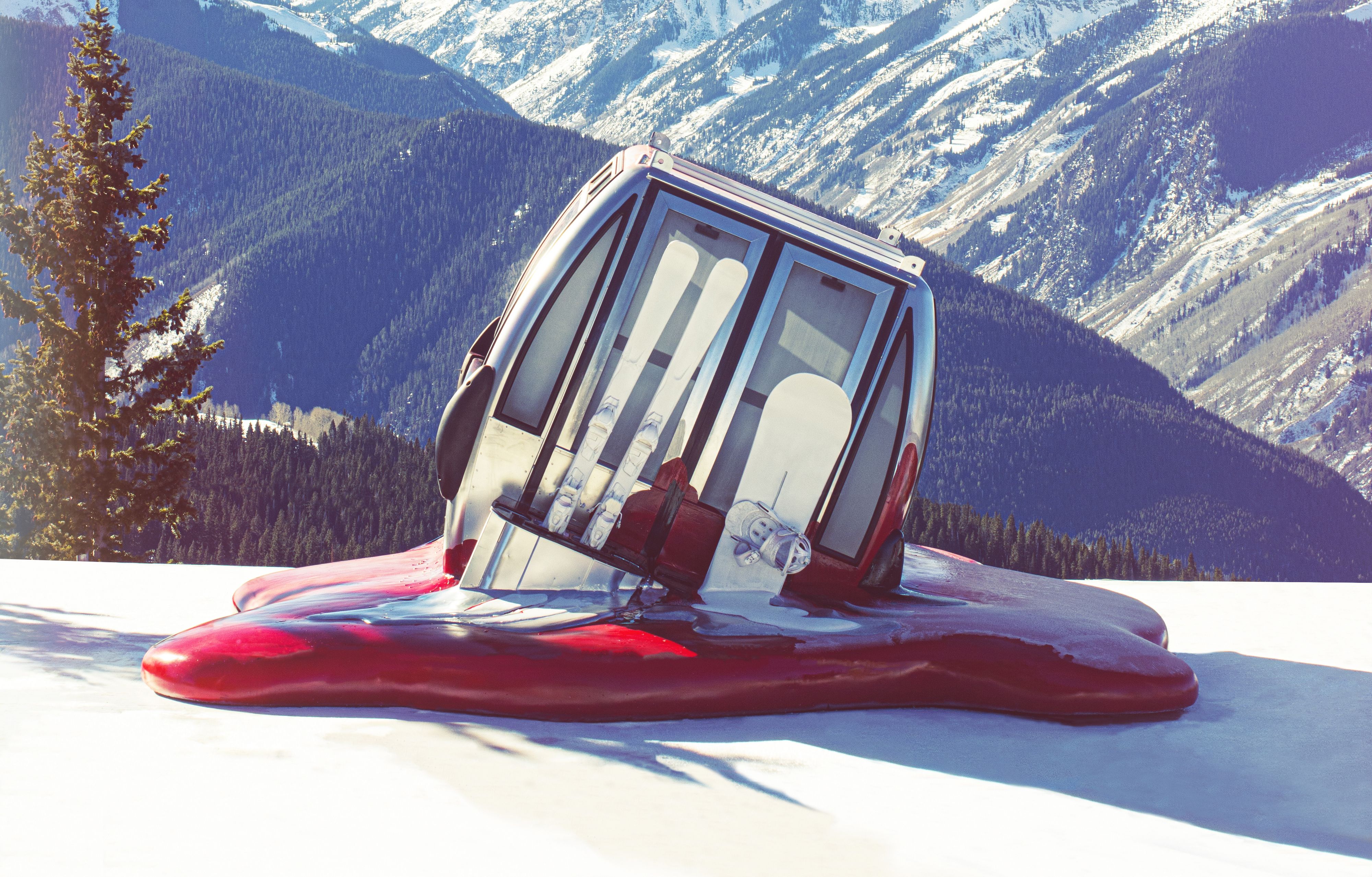 Above: "The Melted Gondola," an art piece, sits atop the Aspen Mountain ski area in Colorado to promote action on climate change.