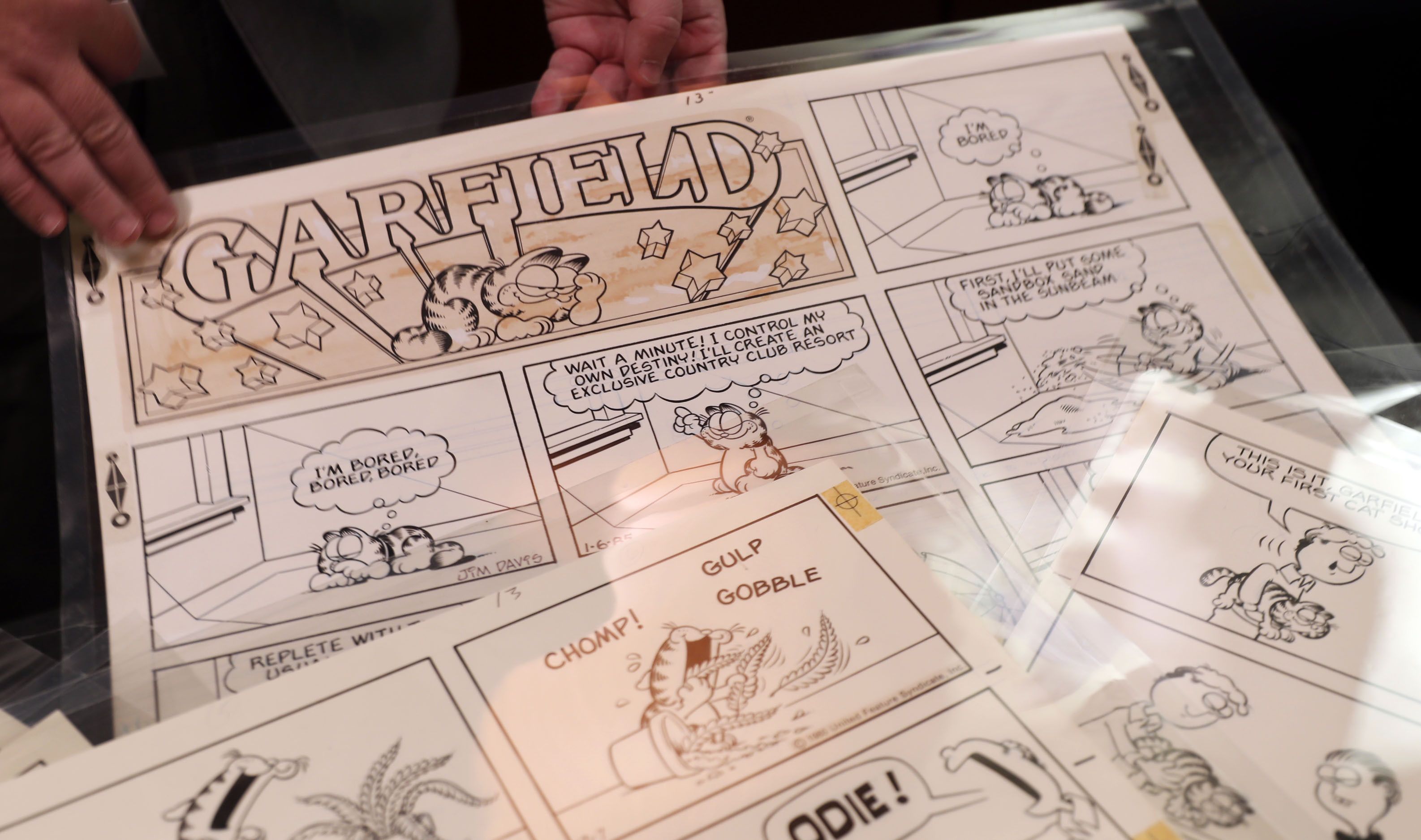 Cartoonist Jim Davis is offering 30+ years of "Garfield" comic strips, hand-drawn on paper, in a rolling auction with new offerings week by week, AP reports.