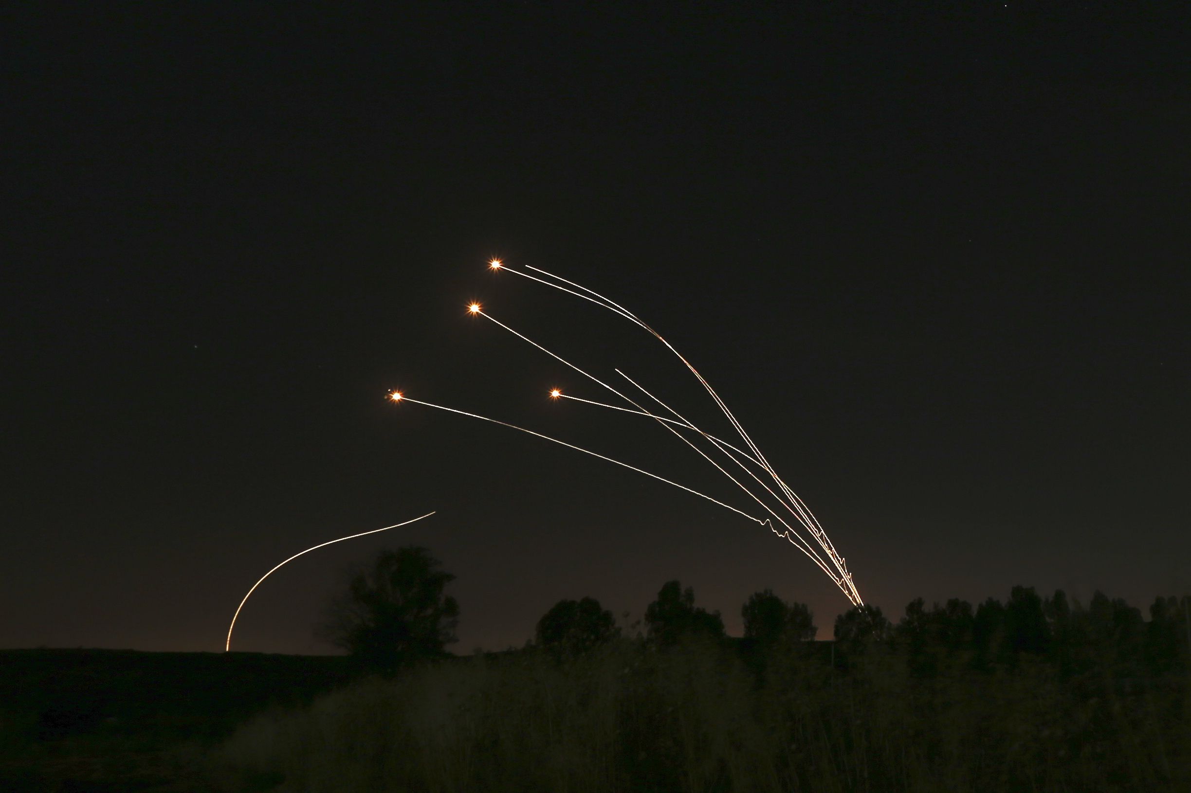 The Israeli Iron Dome air defense system takes out rockets fired from Gaza near Sderot, Israel, on May 4.