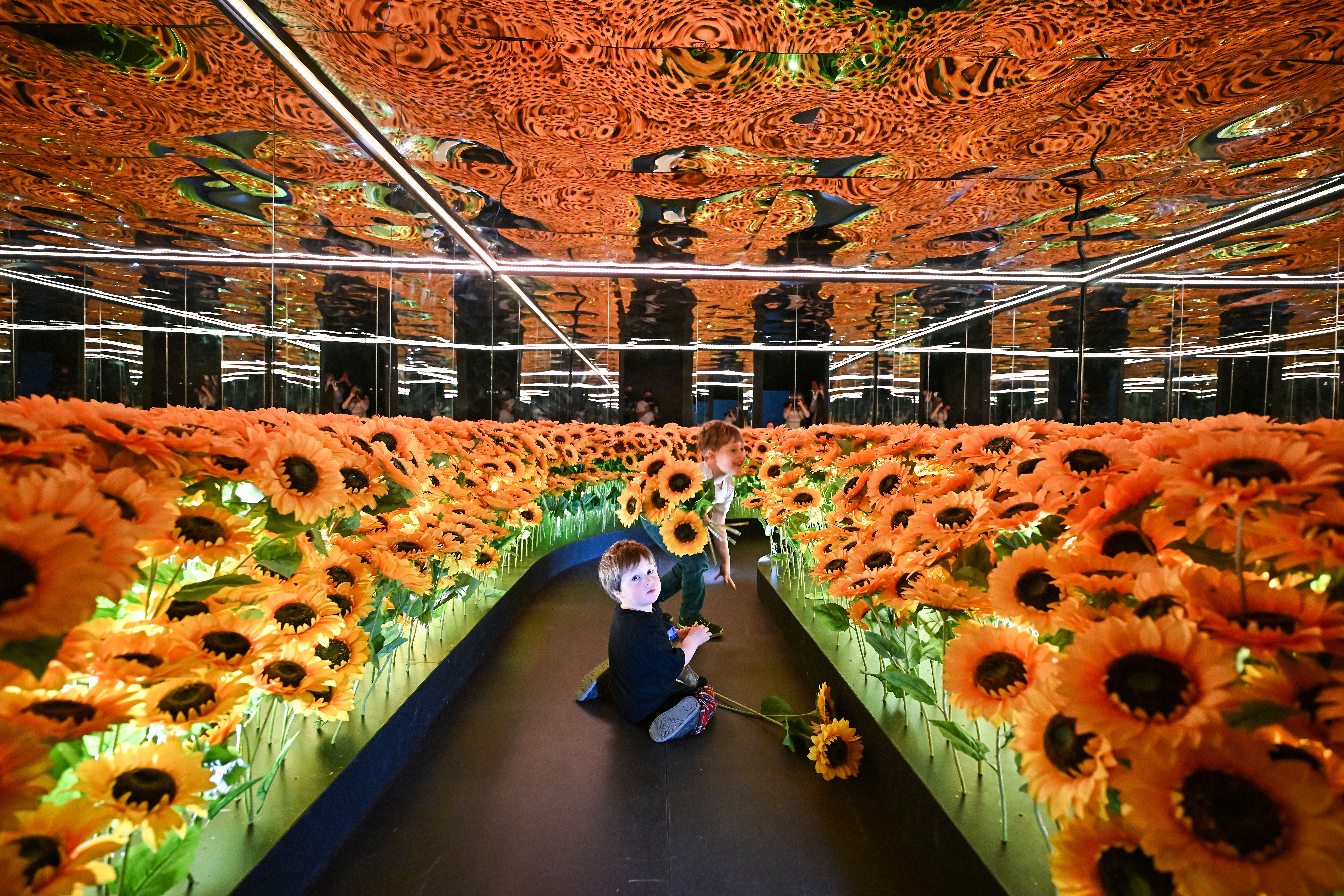 In Edinburgh, Scotland, 2-year-old Innes Boyd and 5-year-old Lenny Boyd soak in Van Gogh Alive — an immersive, multi-sensory art experience, combining high-definition projections of Van Gogh's paintings with digital surround-sound and aromas of Provence.