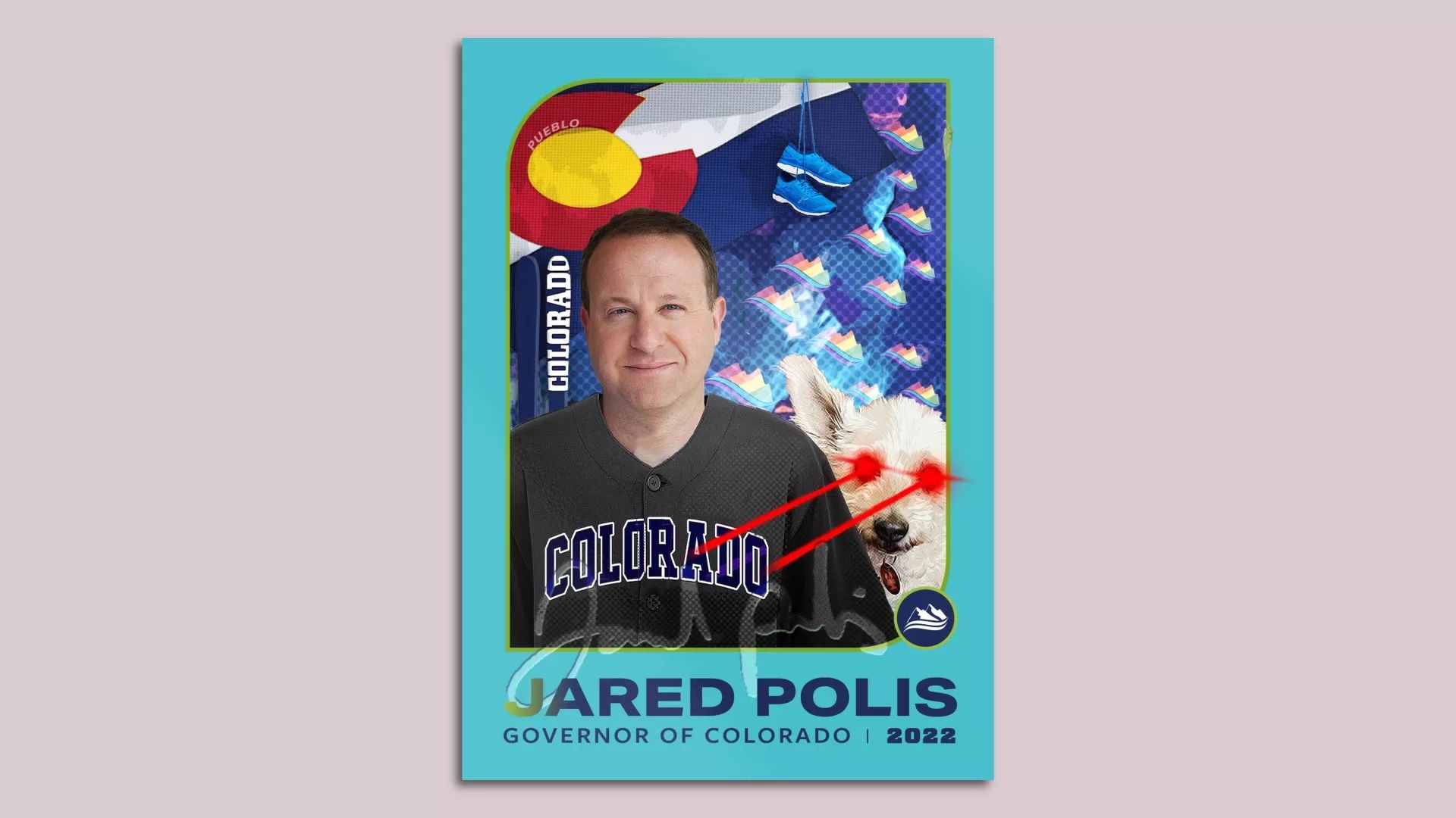 - For the mile-high price of $52.80 (the elevation of Denver in feet), you can buy one of 2,022 digital tokens featuring a pair of sneakers, a green chili pepper, rainbow-colored mountains — and Polis' dog Gia with lasers coming out of her eyes.