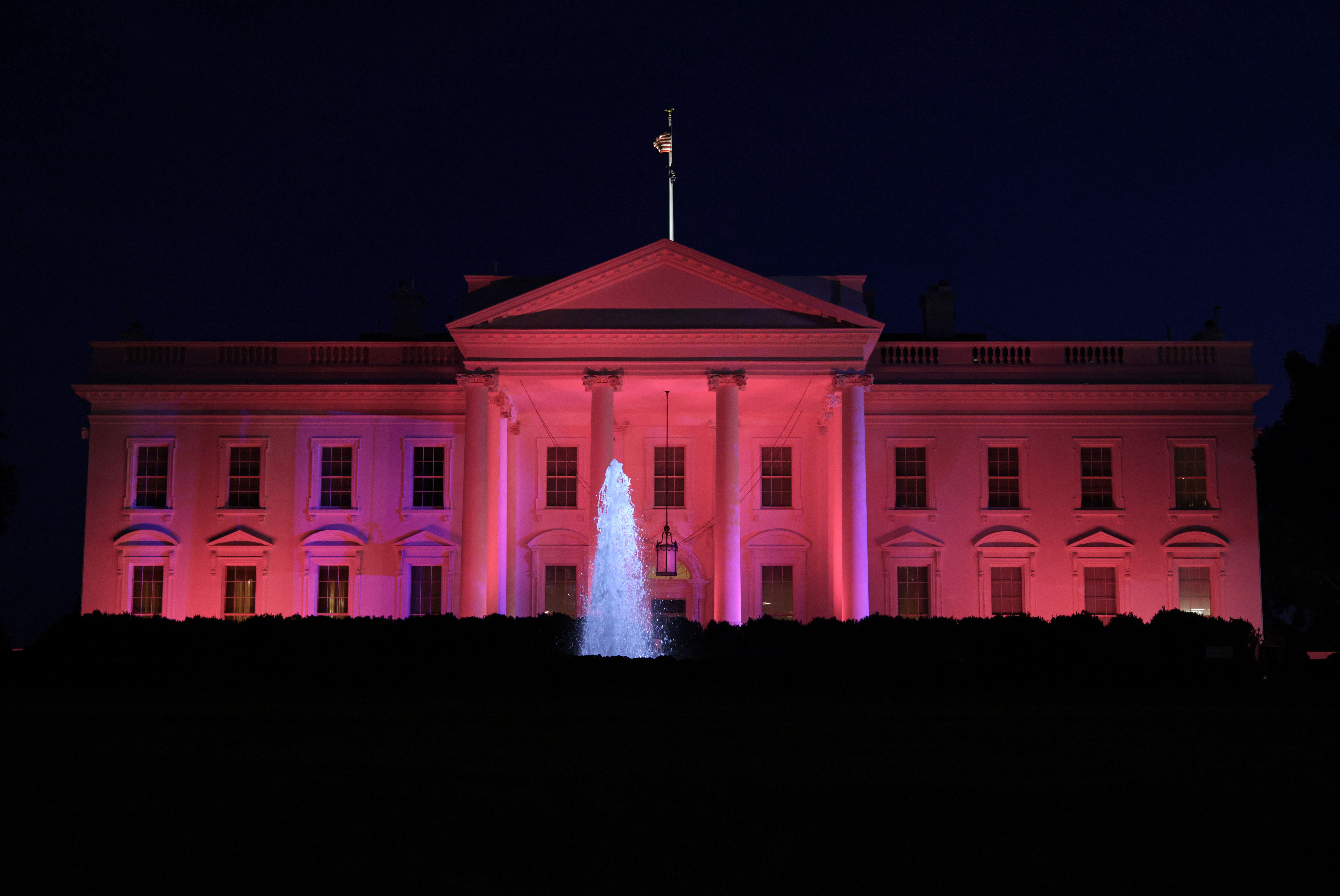 The White House is lit in pink last night for Breast Cancer Awareness Month (October) and National Mammography Day (today).