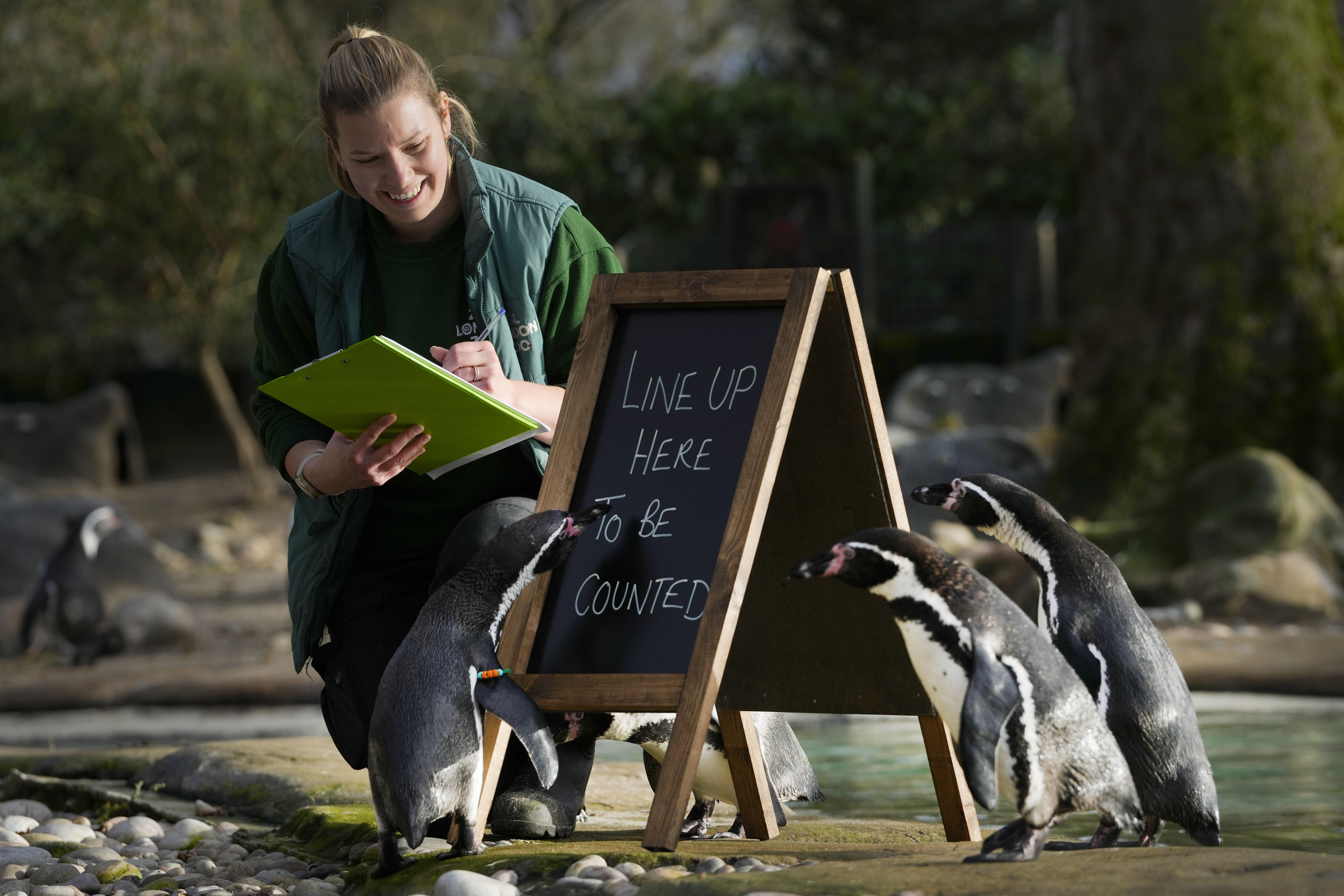 Penguins clock in! The animals lined up to be counted during this week's inventory at ZSL London Zoo in London.