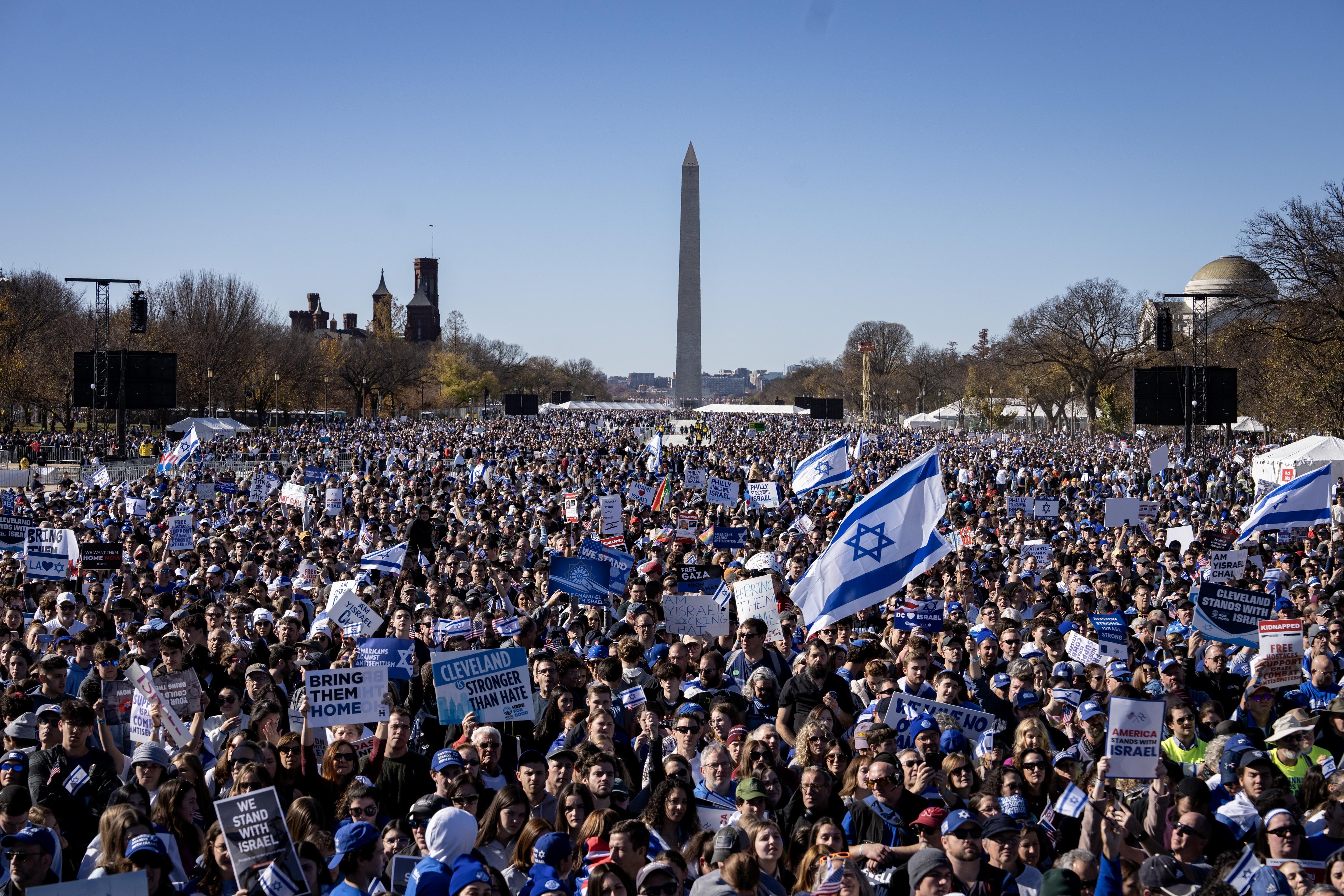 Tens of thousands marched on the National Mall to support Israel's military campaign against Hamas with the cry of: "Never again!"