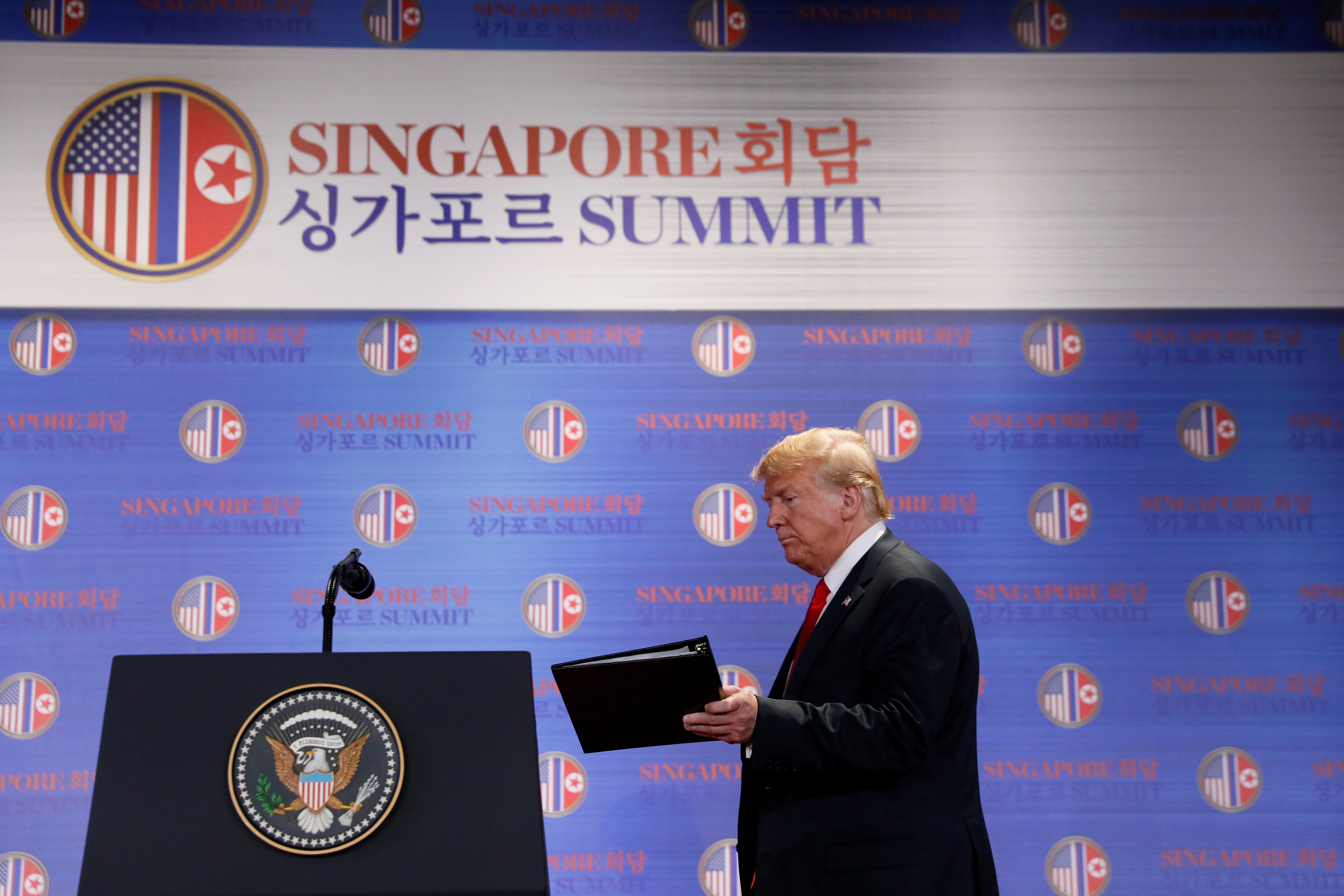 - NBC's Andrea Mitchell tweeted from Singapore: "Now that we’ve been given their statement it is far less than advertised. No new commitments. No timetable. No definitions. Glad they met but no breakthroughs."