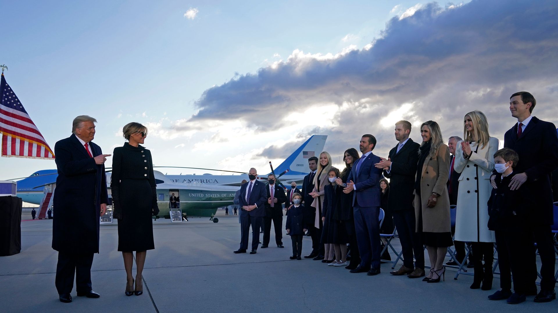 Trump family at his last Andrews departure. Photo: Alex Edelman/AFP via Getty Images