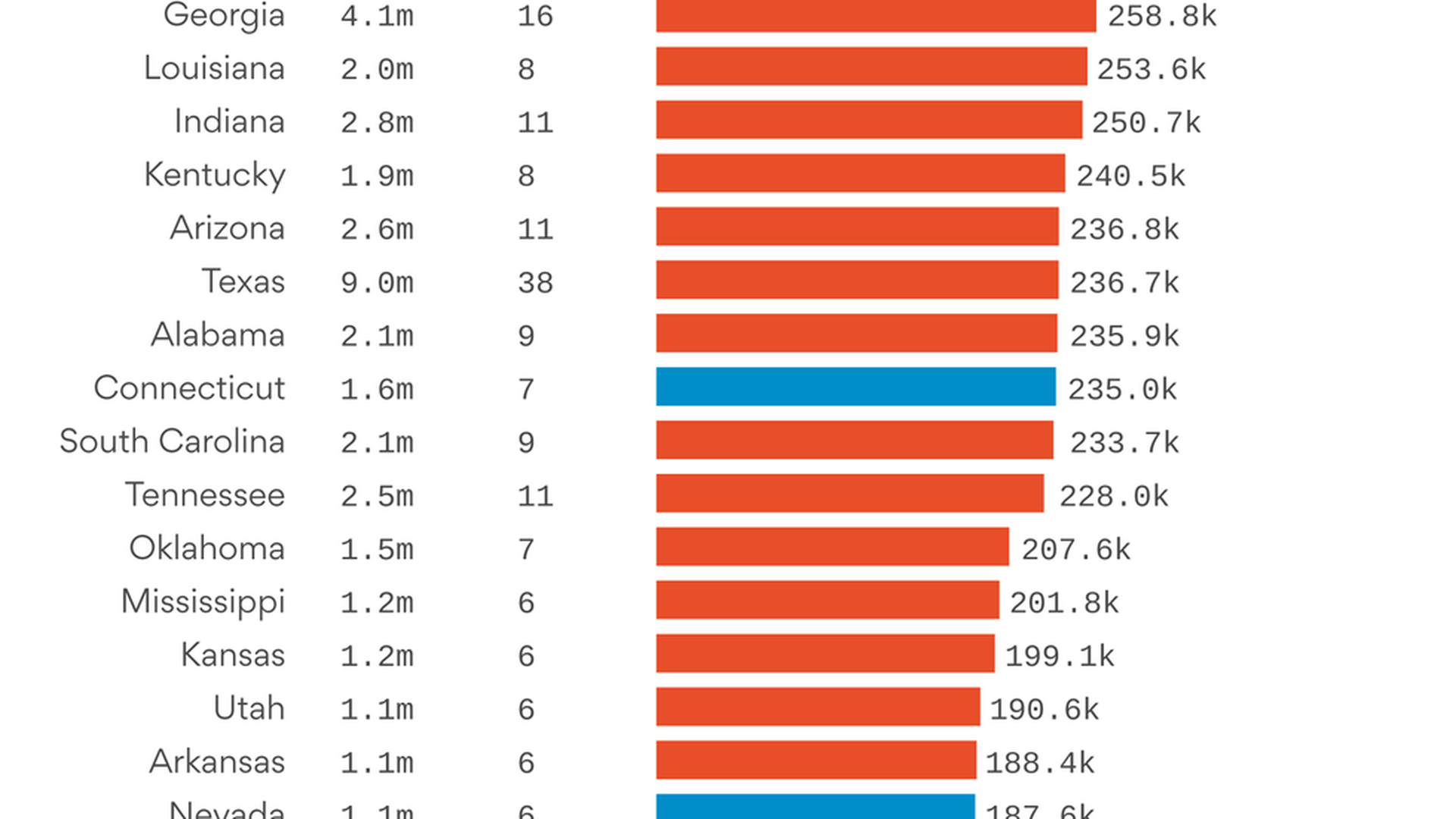 From underrepresented to overrepresented, this chart shows the states in which voters have the most disproportional representation in the Electoral College.