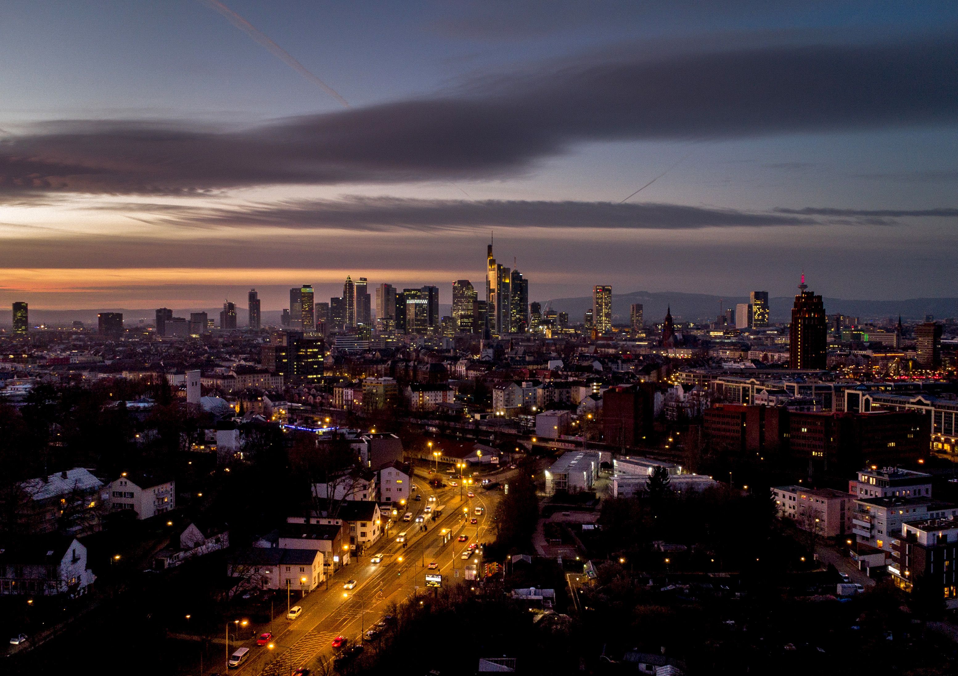 That's the banking district in Frankfurt, Germany, which calls itself "the smallest metropolis in the world." Metro area: 800,000.
