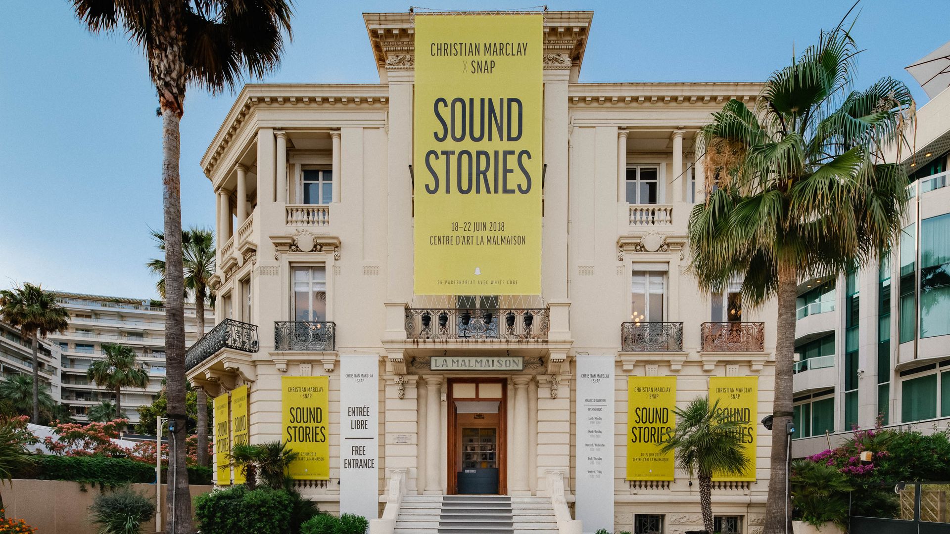 The exhibit — "Sound Stories," by artist Christian Marclay — has taken over La Malmaison art gallery on the main drag of the Cannes Lions International Festival of Creativity, an annual media bacchanal(ish) that draws advertising and media execs for a lavish week of rosé and innovation. As provided by Snap: