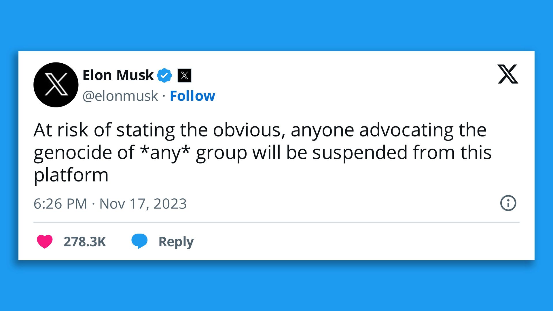 - The European Union's executive branch said yesterday that it's pausing advertising on X and other social media platforms, in part because of a surge in hate speech.