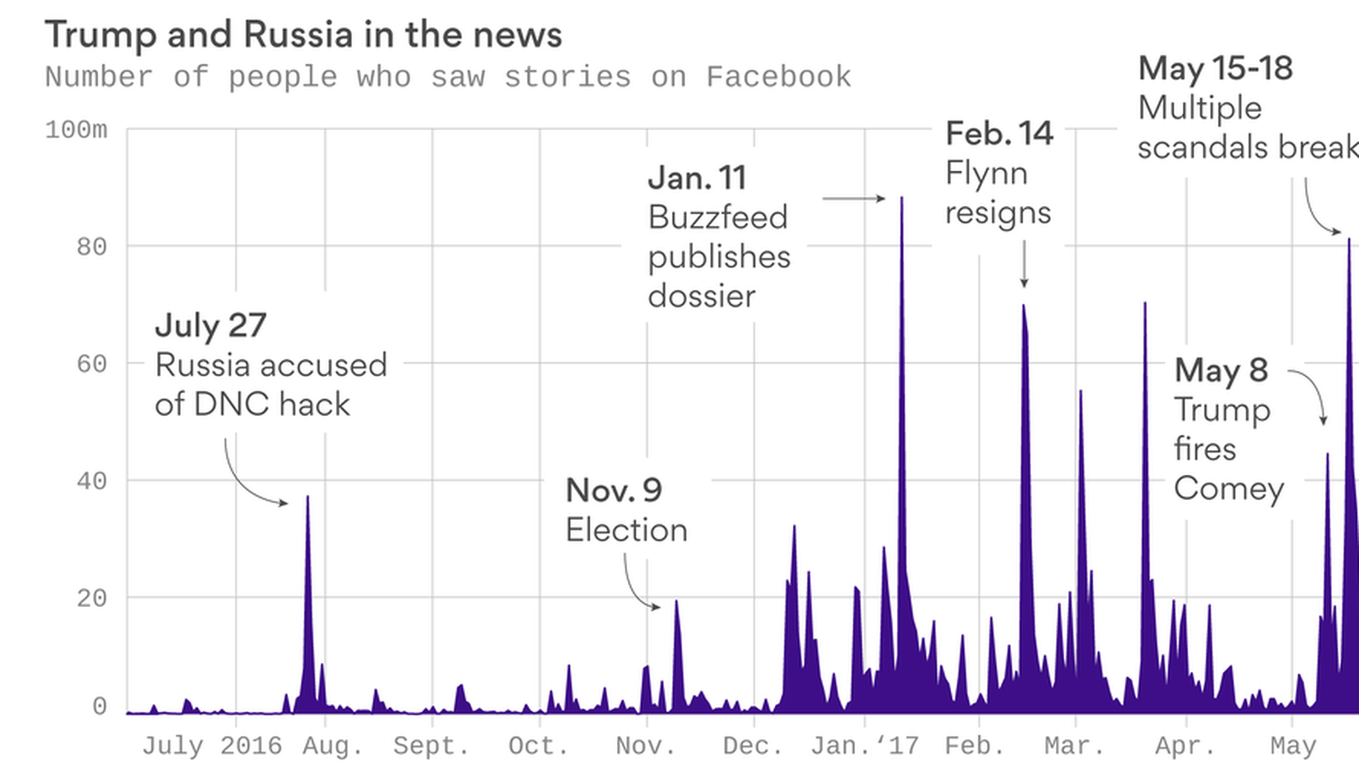 The number of people who actually saw those stories on Facebook was second only to the week BuzzFeed published an unverified Trump dossier, Axios' Stef Kight reports.