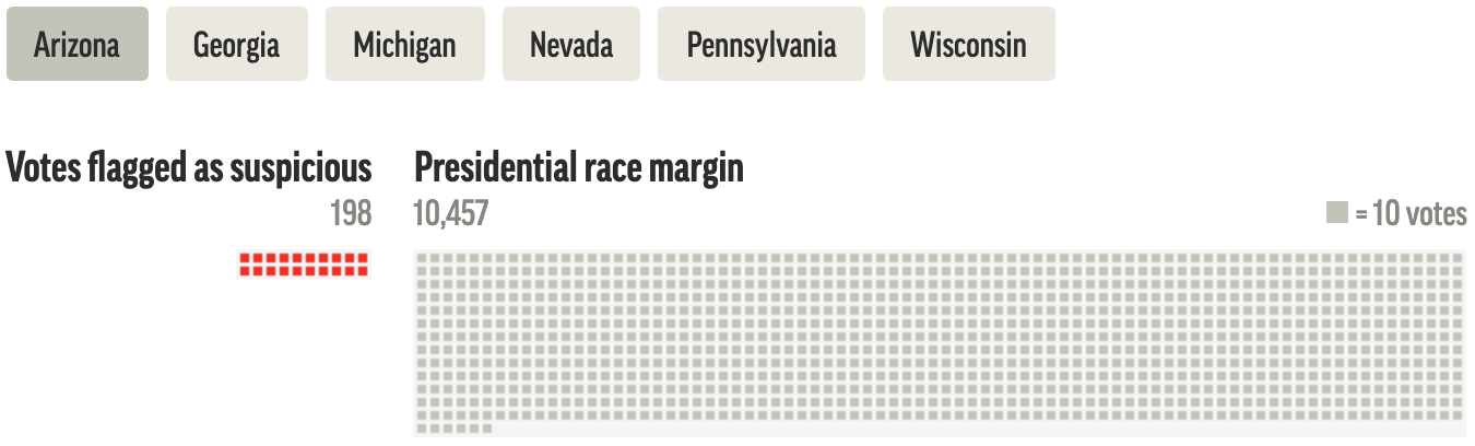 - The disputed ballots represent 0.15% of his victory margin in those states.