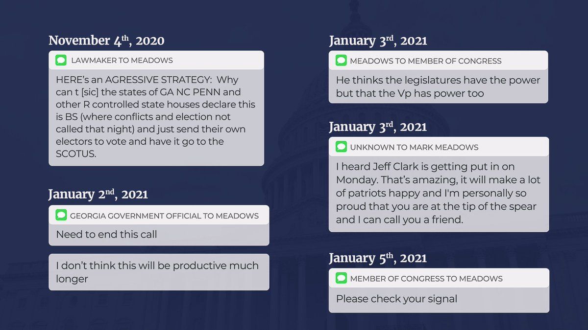 - Their texts had been turned over to the committee by former White House chief of staff Mark Meadows.
