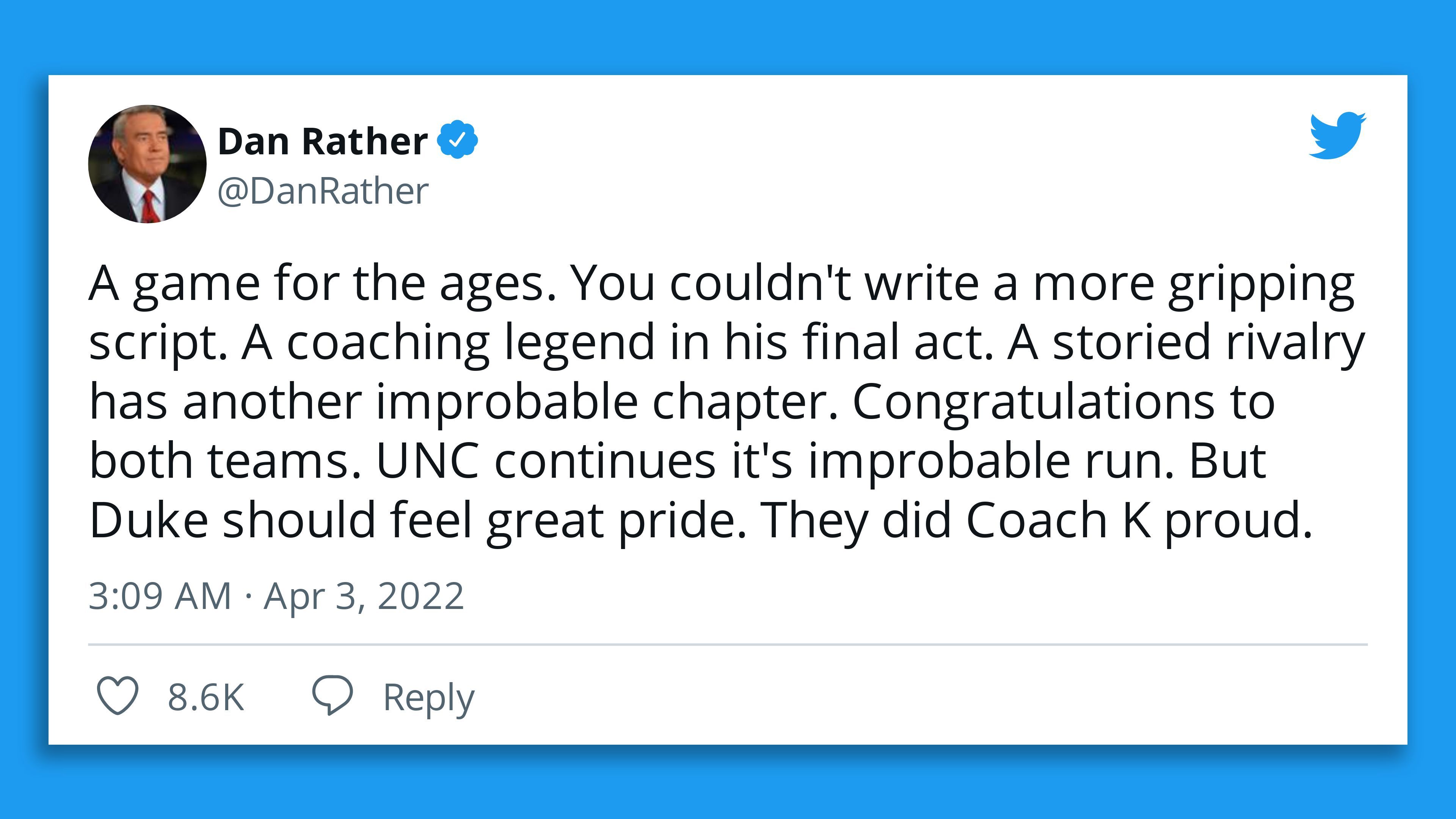 - With Coach K retiring after this season, this was the 258th, most consequential and — just maybe — the very best meeting between these teams, whose arenas are separated by 11 miles down Tobacco Road, from Durham to Chapel Hill, N.C.