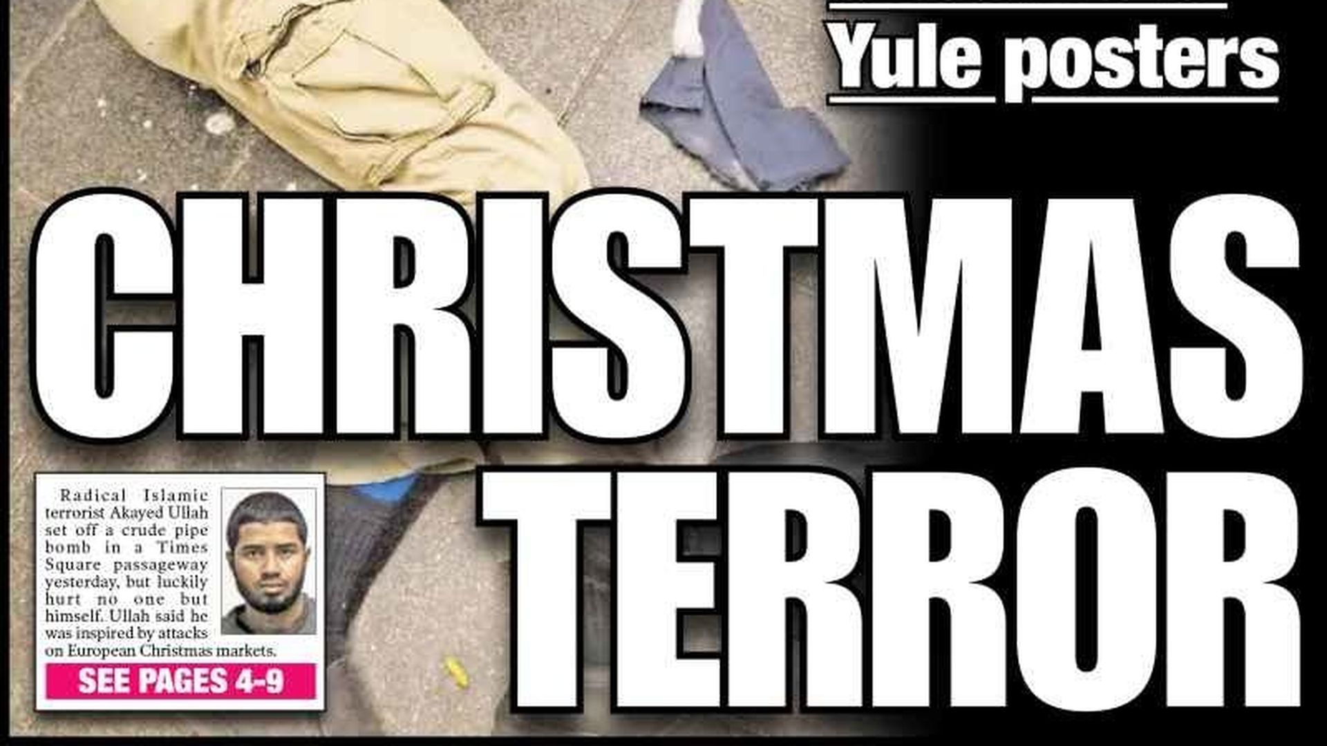 Daily News cover: "ISIS fanatic detonates suicide bomb in Times Square subway station, but plot ... BLEW UP IN HIS FACE!"