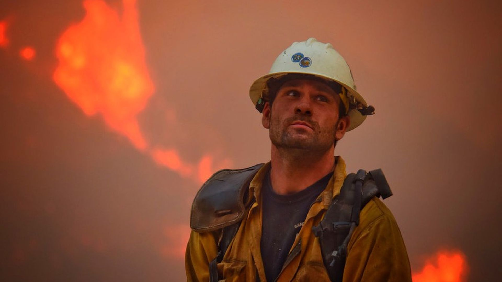 A Santa Barbara County fire hand-crew member, Nikolas Abele, keeps an eye on a hillside for any stray embers during a firing operation in Santa Monica Canyon in Carpinteria, Calif., yesterday.