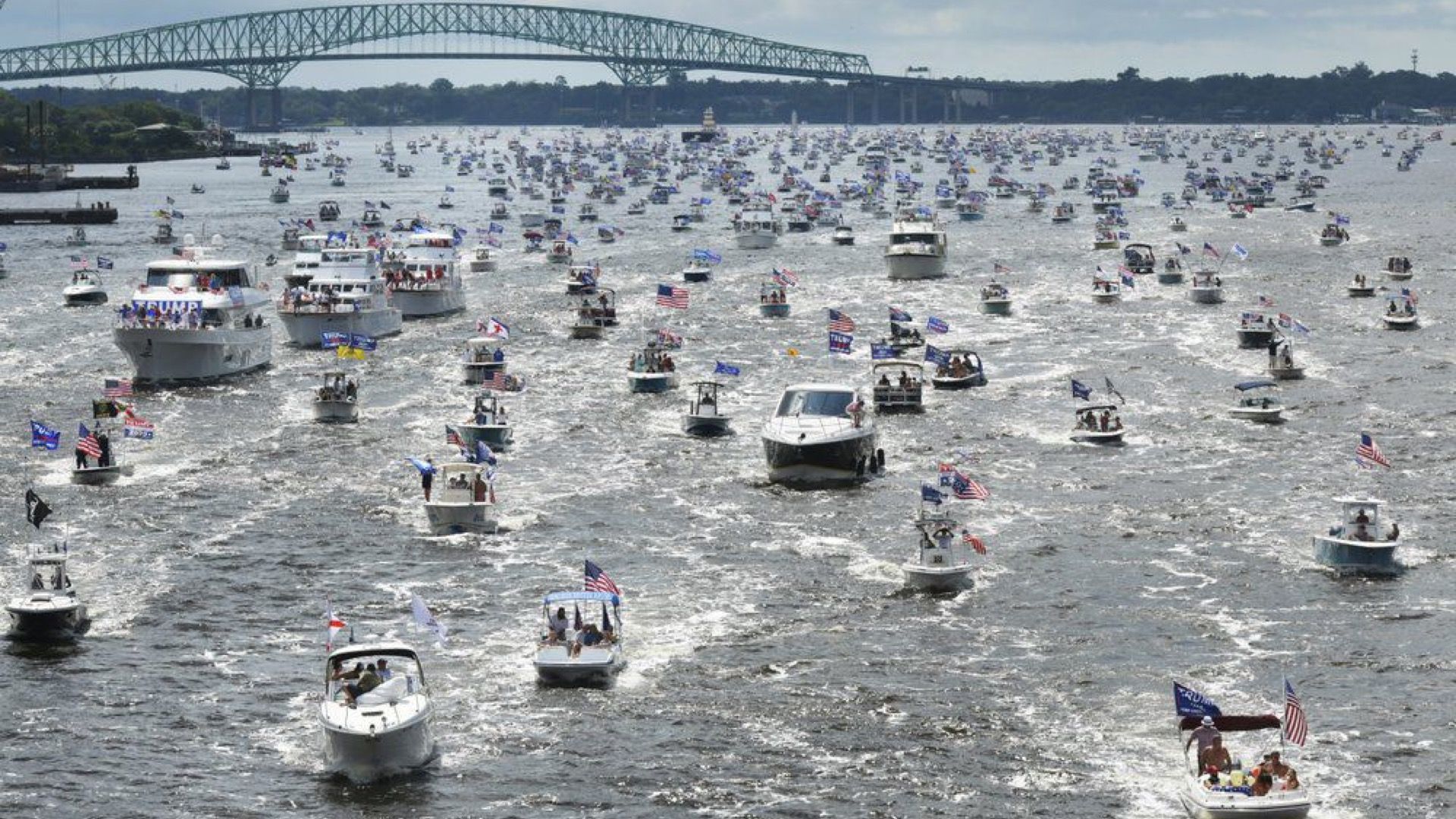 Hundreds of boats rallied yesterday on the St. Johns River in downtown Jacksonville to celebrate President Trump's 74th birthday, AP reports.